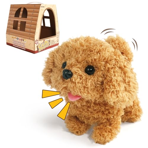 Oh wie niedlich! Dieses 13-teilige Hundespielzeug Set ist ein Traum für alle Kinder! Der süße Plüschwelpe läuft, bellt, wedelt mit dem Schwanz und nickt mit dem Kopf - wie ein echter Hund! Einfach Kopf streicheln und er bellt. Komplett mit Hundebox, Futternapf, Leine, Bürste, Schere und vielem mehr. Kinder können Füttern, Baden, Pflegen - alles was zu einem Haustier gehört. Aus hochwertigen Materialien, sicher für Kinder ab 3 Jahren. Mit Tragegriff - überall mitnehmbar. Fördert Verantwortungsbewusstsein und Tierliebe. Perfektes Geschenk für Geburtstage, Weihnachten oder einfach so. Dein Kind wird diesen neuen besten Freund lieben!