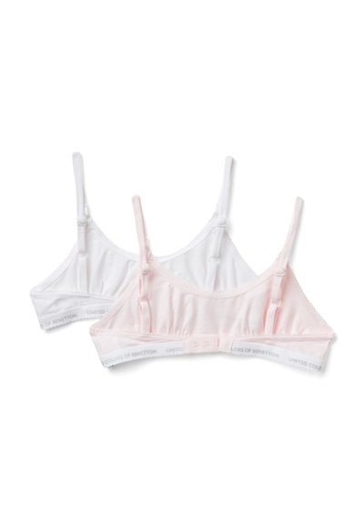 Perfekte Basics für junge Mädchen! Dieses 2er-Pack von United Colors of Benetton bietet einen einfarbigen BH und einen mit Allover-Print - beide aus super elastischem Stoff. Die neue Version aus Bio-Baumwolle ist besonders hautfreundlich.