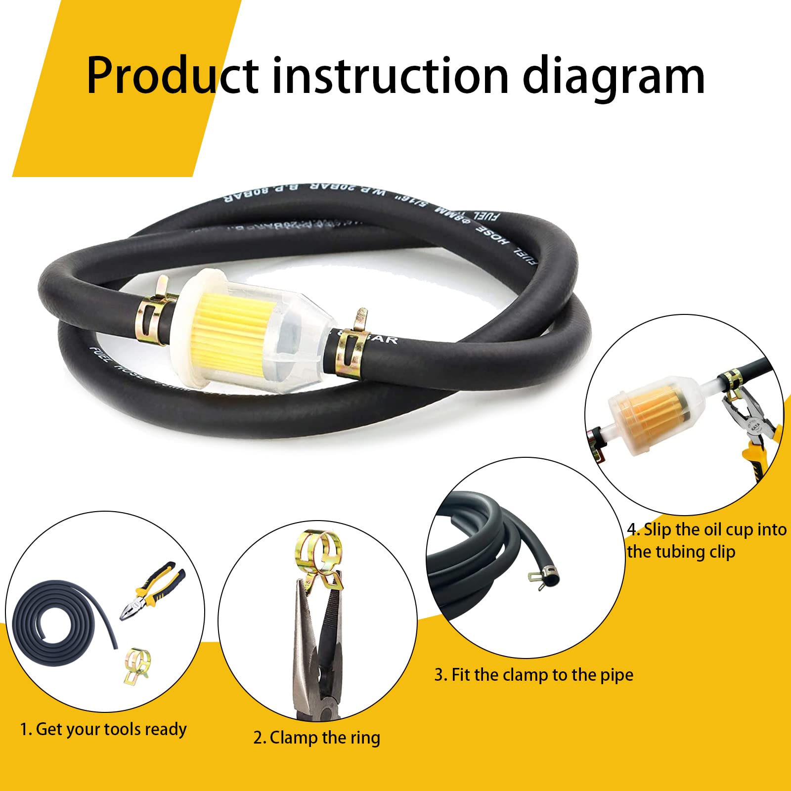 • Benzinschlauch Set 5mm - Komplettkit Mit Filtern & Schlauchschellen
