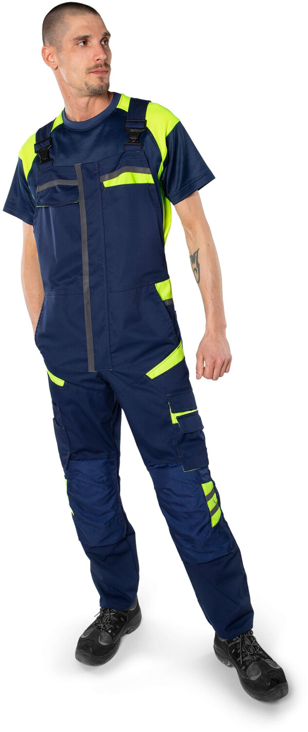 Hey, die Fristads Fusion Latzhose ist echt praktisch für jeden, der im Handwerk, Service oder auf dem Bau arbeitet. Das Material ist leicht aber robust und hat mechanisches Stretch - du bewegst dich also super frei. Mit den verstellbaren Trägern und dem Frontreißverschluss sitzt sie perfekt. Praktisch: viele Taschen! Zwei Brusttaschen, Vordertaschen, Oberschenkeltaschen und sogar ne Handytasche mit D-Ring. Die Knietaschen sind mit CORDURA verstärkt und von außen zugänglich - die Kniepolster lassen sich in der Höhe anpassen. Die Hose ist nach EN 14404 geprüft und für Industriewäsche nach ISO 15797 geeignet. Reflektierende Details sorgen für mehr Sichtbarkeit. Material: 65% Polyester, 35% Baumwolle, 260g/m². Es gibt viele Farben wie Army Grün, Blau, Marine oder Schwarz. OEKO-TEX zertifiziert und auch als Sonderanfertigung in D-Größen verfügbar. Perfekt für den ganzen Jahr Einsatz!