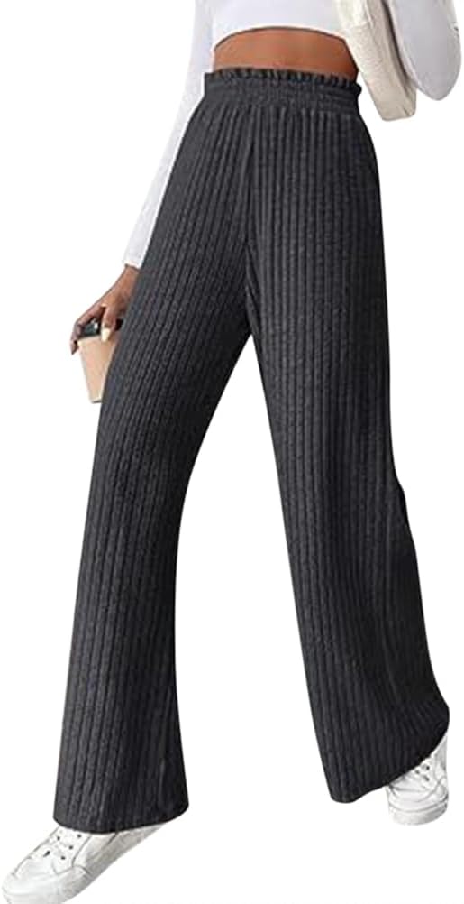 Umstandshose Damen Mit Weiten Beinen - Bequeme Strickhose Mit Hoher Taille & Kordelzug