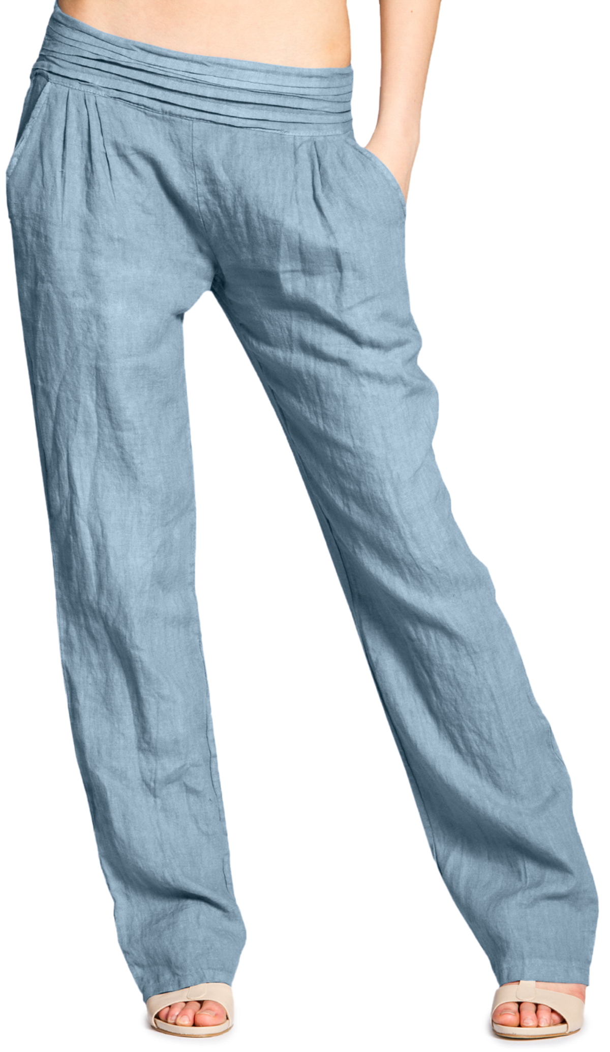 Die perfekte Sommerhose für heiße Tage! Aus 100% Leinen, super atmungsaktiv und angenehm leicht. Mit breitem Stretch-Bund, der super bequem sitzt und Problemzonen kaschiert. Perfekt kombinierbar mit Sneakern, Sandaletten oder sogar Highheels. Ob als Yogahose, für entspannte Stadtbummel oder Urlaub - sie fühlt sich einfach gut an. Made in Italy, in Größen S bis 3XL. Bei 30°C waschbar. Style und Komfort in einem!
