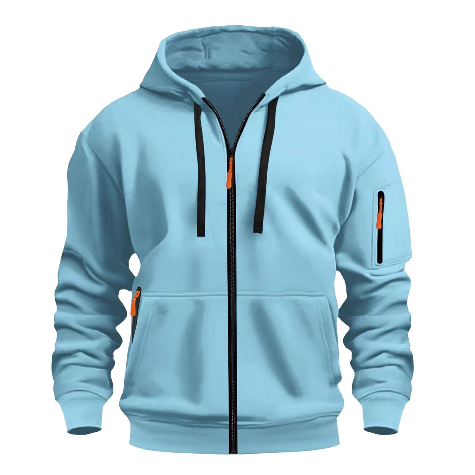 Also, dieser Hoodie ist echt ein Alleskönner! Mit Reißverschluss und praktischen Taschen ausgestattet, begleitet er dich durch alle Jahreszeiten. Das Material ist superweich und angenehm auf der Haut - perfekt für lange Tage im Büro, beim Sport oder einfach nur zum Chillen. Es gibt ihn in verschiedenen Größen von S bis XXXXXL, also für jeden was dabei. Die Passform ist modern geschnitten und die Kapuze gibt extra Komfort. Praktisch: Die Ärmel haben Reißverschluss-Ablagen und die Taschen sind groß genug für Handy, Schlüssel und Co. Waschmaschinenfest bis 30 Grad, aber bitte nicht in den Trockner! Ob unter der Jacke im Herbst oder solo im Frühling - dieser Hoodie macht einfach immer eine gute Figur und fühlt sich klasse an. Einfach mal anziehen und wohlfühlen!