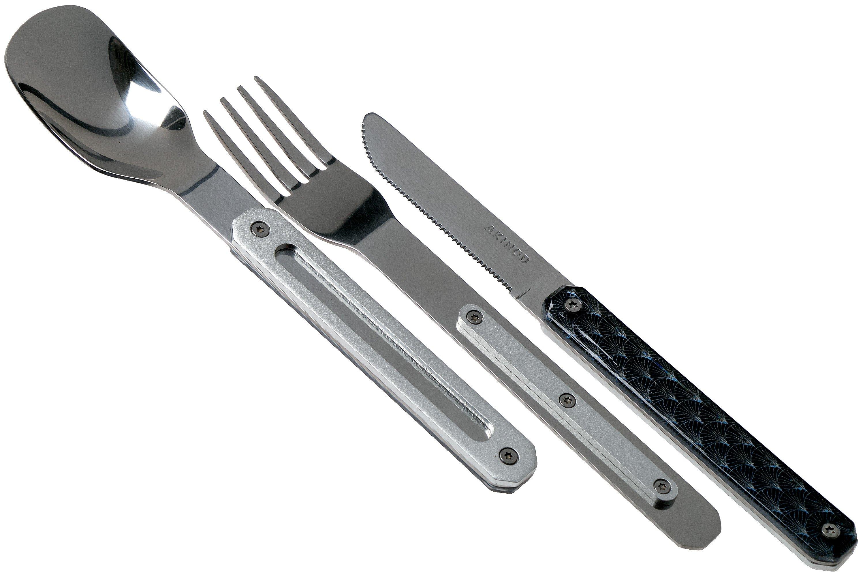 Essen unterwegs war noch nie so stylisch! Dieses Akinod Besteck-Set ist dein perfekter Begleiter für unterwegs. Die 3 Teile (Messer, Gabel, Löffel) sind magnetisch und bleiben sicher zusammengehalten. Das Messer hat eine mikrogezahnte Klinge, die nie nachgeschliffen werden muss - immer scharf! Aus hochwertigem Edelstahl und nur 130 Gramm leicht. Maße: 17,5 x 3,5 x 2,5 cm - passt in jede Tasche. Inklusive praktischem Etui. Perfekt für die Arbeit, Picknicks, Camping oder Reisen. Mach deine Mittagspause zu einem echten Genuss - egal wo du bist!