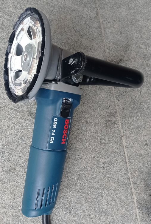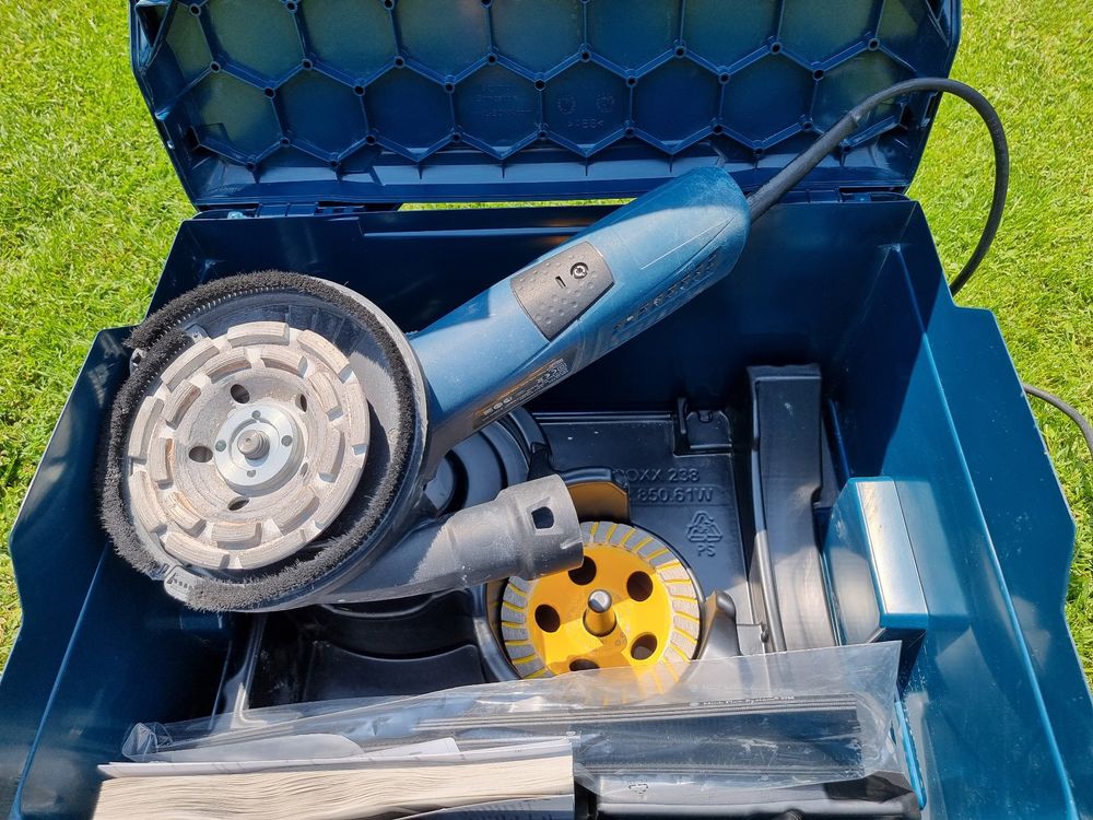 Professionelles Arbeiten mit dem Bosch Betonschleifer GBR 15 CAG! Mit 1500 Watt Power und nur 2,6kg Gewicht ist er der perfekte Partner für Handwerker und Heimwerker. Die öffenbare Schutzhaube ermöglicht randnahes Schleifen an Wänden und Ecken. Im Lieferumfang: Diamanttopfscheibe 125mm, 3 Ersatzbürsten, Spannschlüssel und praktische L-BOXX. Das Click & Clean System sorgt für staubarmes Arbeiten mit Bosch-Saugern. Constant Electronic hält die Leistung konstant, Sanftanlauf schont das Netz. 9300 U/min für effizientes Schleifen von Beton, Mörtelresten oder unebenen Oberflächen. Der schmale, gummiierte Griff liegt perfekt in der Hand. Für Stuckateure, Maler und alle, die präzise schleifen müssen - dieses Werkzeug macht's möglich!