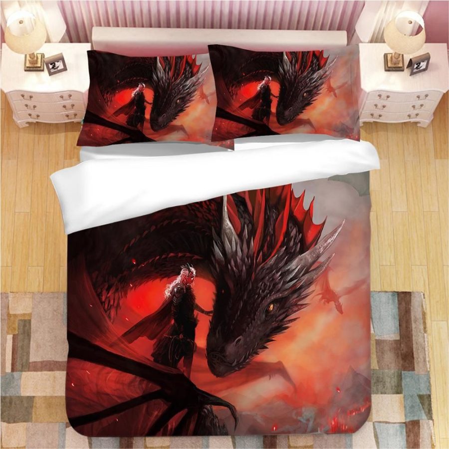 Für alle Game of Thrones Fans - diese Daenerys Targaryen Bettwäsche ist der absolute Hammer! Das 3-teilige Set enthält 1 Bettbezug 135x200cm und 2 Kissenbezüge 80x80cm. Hergestellt aus weicher Mikrofaser, die atmungsaktiv und hautfreundlich ist. Das Motiv ist einseitig in voller Breite bedruckt mit lebendigen Farben, die nicht verblassen. Die Rückseite ist in schlichtem Weiß gehalten. Mit Reißverschluss und praktischen Eckbändchen zum Fixieren der Decke - so verrutscht nichts! Perfekt für Kinder, Teenager oder erwachsene Fans der Serie. Das Bettwäsche-Set ist ganzjährig nutzbar - im Sommer angenehm kühl, im Winter kuschelig warm. Die Qualität ist top, und nach dem Waschen sieht sie aus wie neu. Ob als Geburtstagsgeschenk, zu Weihnachten oder einfach so - damit machst du jeden GoT-Fan glücklich! Dein Schlafzimmer wird zum Thronsaal, und du träumst von Drachen und Abenteuern. Einfach umwerfendes Design kombiniert mit hohem Komfort - mehr braucht ein echter Fan nicht!