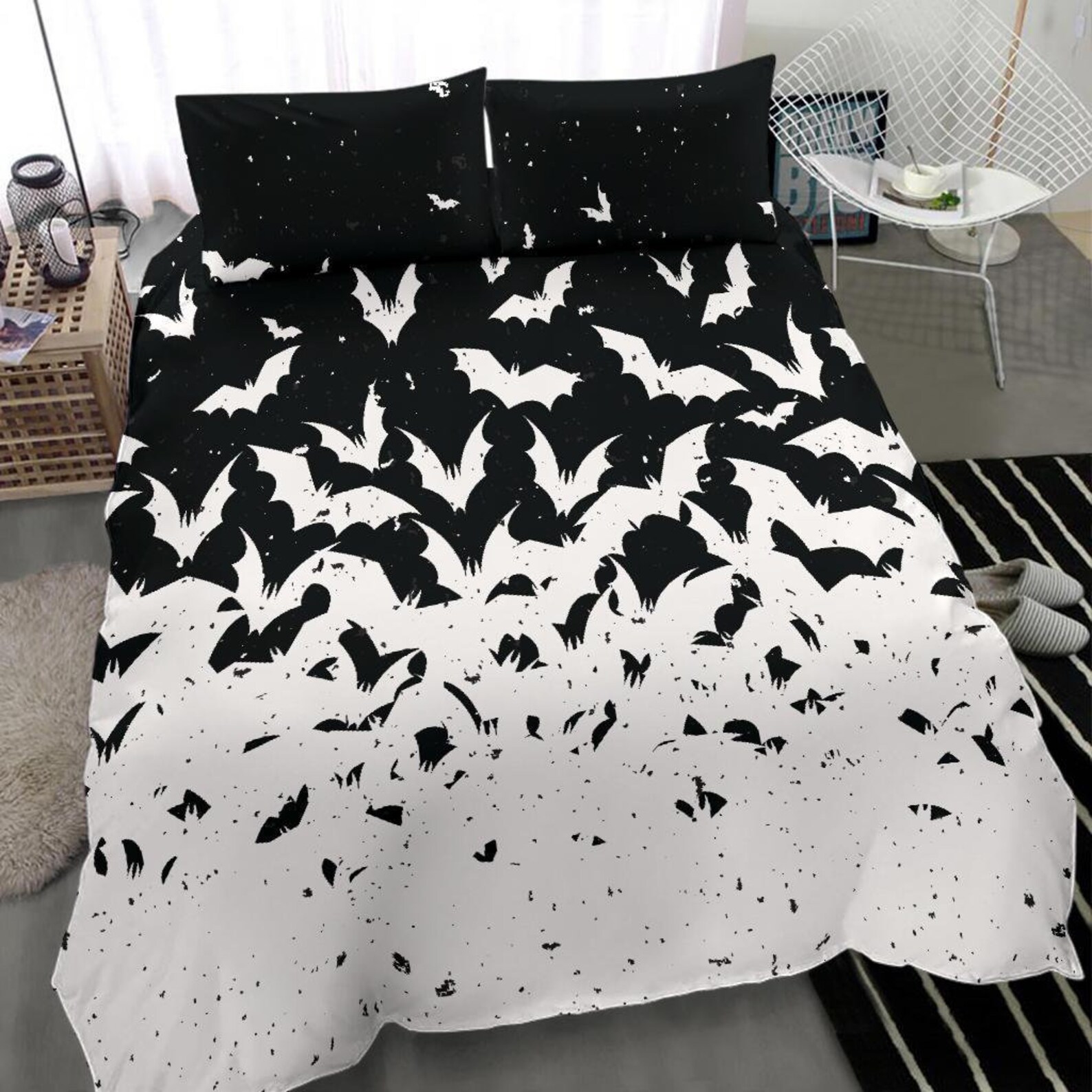 Einfach in der Maschine waschbar bei kalten Temperaturen. Bügelfrei und knitterarm - ideal für den hektischen Alltag. Perfekt für Jugendzimmer, Gothic-Fans oder einfach alle, die ihrem Schlafzimmer etwas düsteren Charme verleihen wollen!