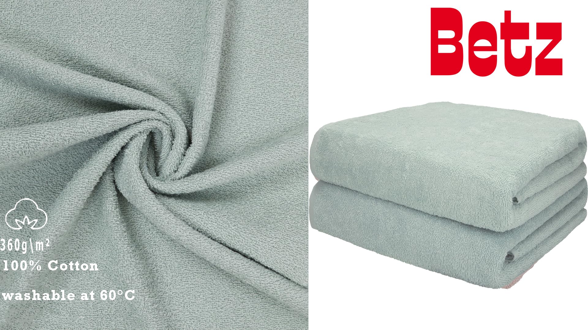 Luxuriöse XXL-Badetücher von Betz! Mit 100x200cm Größe umhüllen sie dich komplett nach dem Baden oder Duschen. Aus 100% Baumwolle mit 360g/m² - super saugstark und flauschig weich. Ideal für Bad, Sauna, Strand oder Schwimmbad. Mit praktischer Aufhängeschlaufe. Waschbar bei 60°C und trocknergeeignet. Als 2er-Set perfekt für Gäste oder zum Wechseln. Seit über 60 Jahren deutsches Familienunternehmen für Qualitätstextilien. Verwöhne dich mit dem Komfort von Betz - du wirst es lieben!