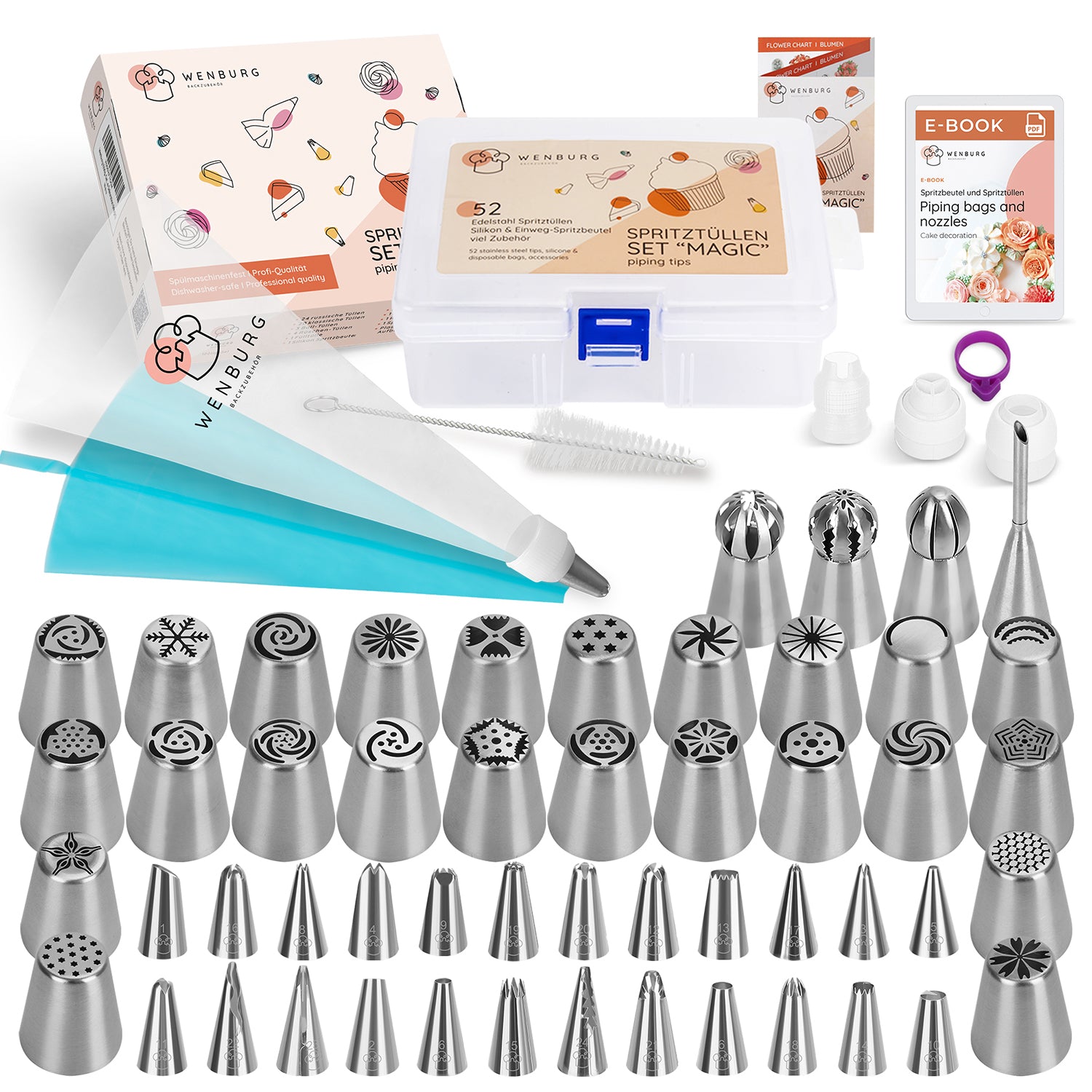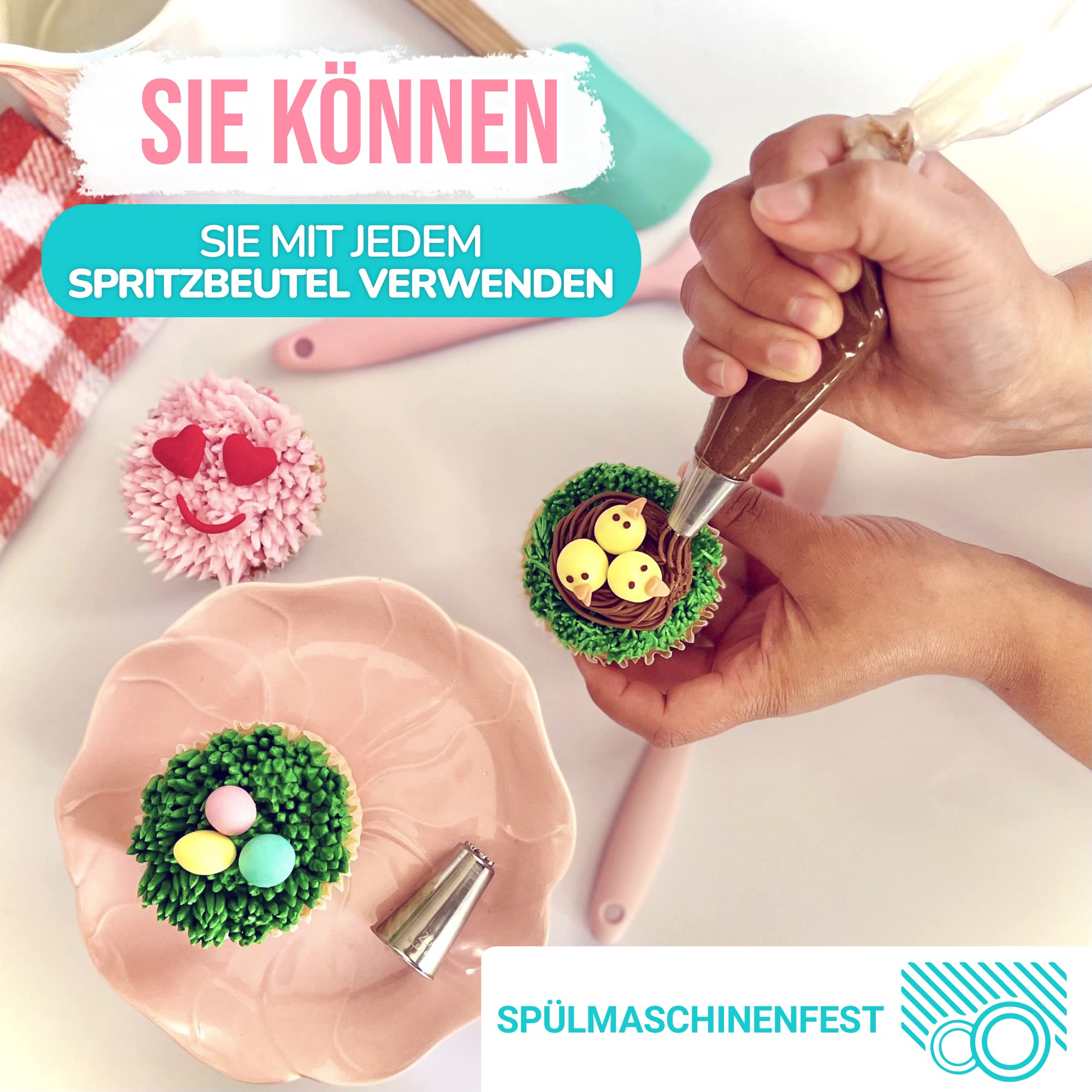 Wow, dieses Spritzbeutel-Set ist perfekt für Bäcker! 4 Baumwoll-Beutel in 25-40cm Größe + 6 Edelstahl-Tüllen + Reinigungsbürste. Damit zauberst du Blumen, Sterne, Verzierungen - alles möglich! Aus hochwertiger Baumwolle und Silikon, richtig stabil. Wiederverwendbar und spülmaschinengeeignet. Perfekt für Anfänger und Profis, macht Kekse und Torten zum Hingucker. Einfach befüllen, Tülle aussuchen und losspritzen. Das ideale Geschenk für Back-Fans!