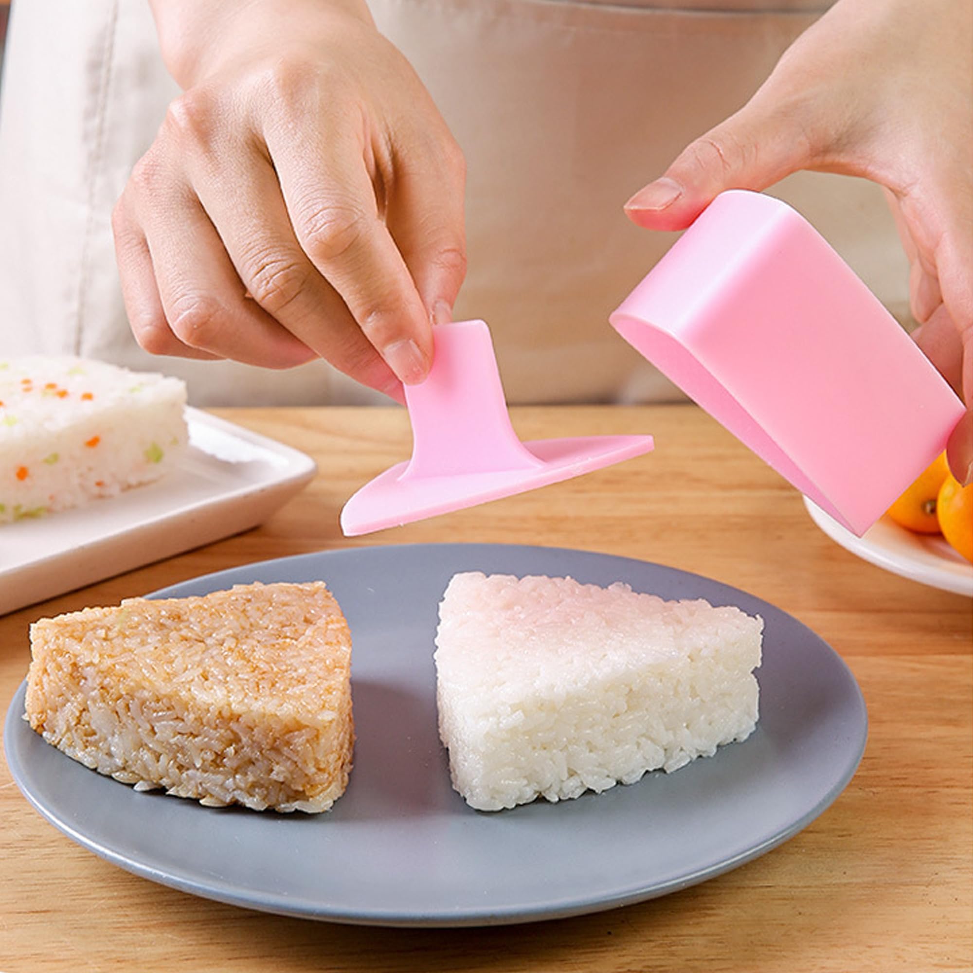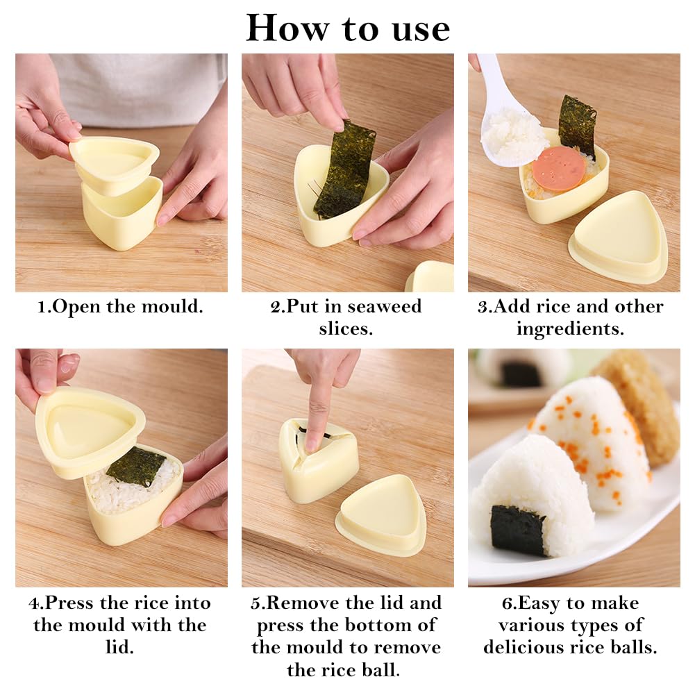 Sushi-Fans, dieses Set macht Spaß! Perfekt für Anfänger um zu Hause leckere Sushi-Reisbällchen zu machen. Im Set: 2 Sushi-Formen (groß 8,9cm und klein 5,4cm), 100 Einweg-Verpackungsbeutel und 100 Aufkleber. Aus lebensmittelechtem PP - BPA-frei und mikrowellengeeignet. Einfach zu bedienen: Reis in die Form, drücken - fertig ist das Onigiri! Die kleine Lasche hilft, die Reisbällchen ohne klebrige Finger herauszudrücken. Die süßen Beutel mit verschiedenen Mustern sind perfekt zum Verpacken. Mit den Aufklebern kannst du sogar Geschmacksnamen darauf schreiben. Super für Bento-Boxen, Partys, Picknicks oder Reisen. Auch für Kinder geeignet - ein toller Weg, ihnen Kochen näher zu bringen. Du kannst verschiedene Zutaten ausprobieren und deine eigenen Kreationen machen. Ein wunderbares Geschenk für Sushi-Liebhaber. Also, wenn du mal was anderes ausprobieren willst und deine Gäste beeindrucken möchtest - mit diesem Set klappt's bestimmt. Einfach, sauber und mega lecker!