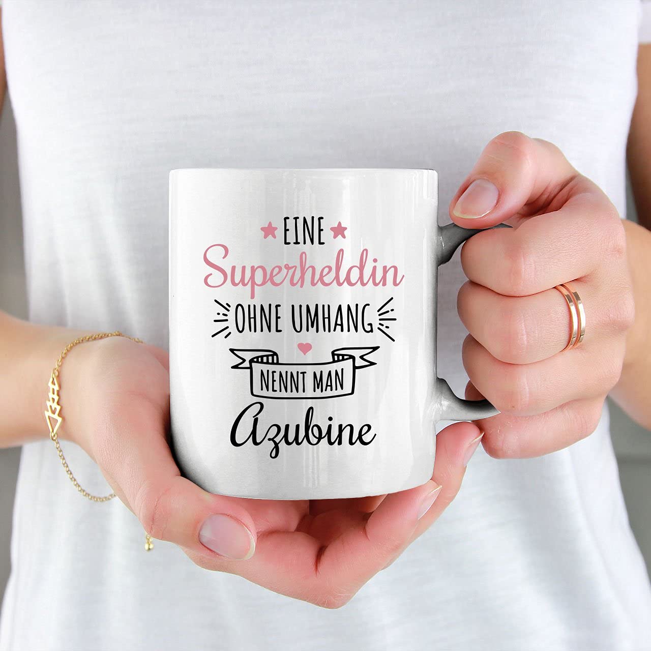 Hey! Suchst du ein lustiges und persönliches Geschenk für einen Azubi, der gerade seine Ausbildung bestanden hat? Diese Tasse mit dem Spruch 'Ruhe bewahren die Azubine regelt das' ist perfekt dafür! Mit einer Höhe von 9,5cm und einem Durchmesser von 8cm bietet sie eine Füllmenge von 300ml - ideal für Kaffee, Tee oder andere Heißgetränke. Perfekt als Abschiedsgeschenk für Kollegen, die den Job wechseln, oder als Anerkennung für eine bestandene Prüfung. Egal ob für Azubi, Azubine, Erzieher, Erzieherin, Chef oder Chefin - diese Tasse bringt garantiert ein Lächeln ins Gesicht! Das Retro-Design und der witzige Spruch machen sie zum echten Hingucker im Büro, in der Kita oder zu Hause. In Deutschland gestaltet und bedruckt, ist sie ein hochwertiges Geschenk, das lange Freude bereitet. Super als Dankeschön für die Lieblingskollegin, als Abschiedsgeschenk beim Jobwechsel oder einfach als kleine Aufmerksamkeit fürs Team. Die Tasse eignet sich auch perfekt als Rentner- oder Ruhestandsgeschenk. Robust und spülmaschinengeeignet (bitte die genauen Pflegehinweise beachten) ist sie für den täglichen Gebrauch gemacht. Mach jemandem eine Freude mit diesem persönlichen und humorvollen Geschenk - denn manchmal sagt eine Tasse mehr als tausend Worte!