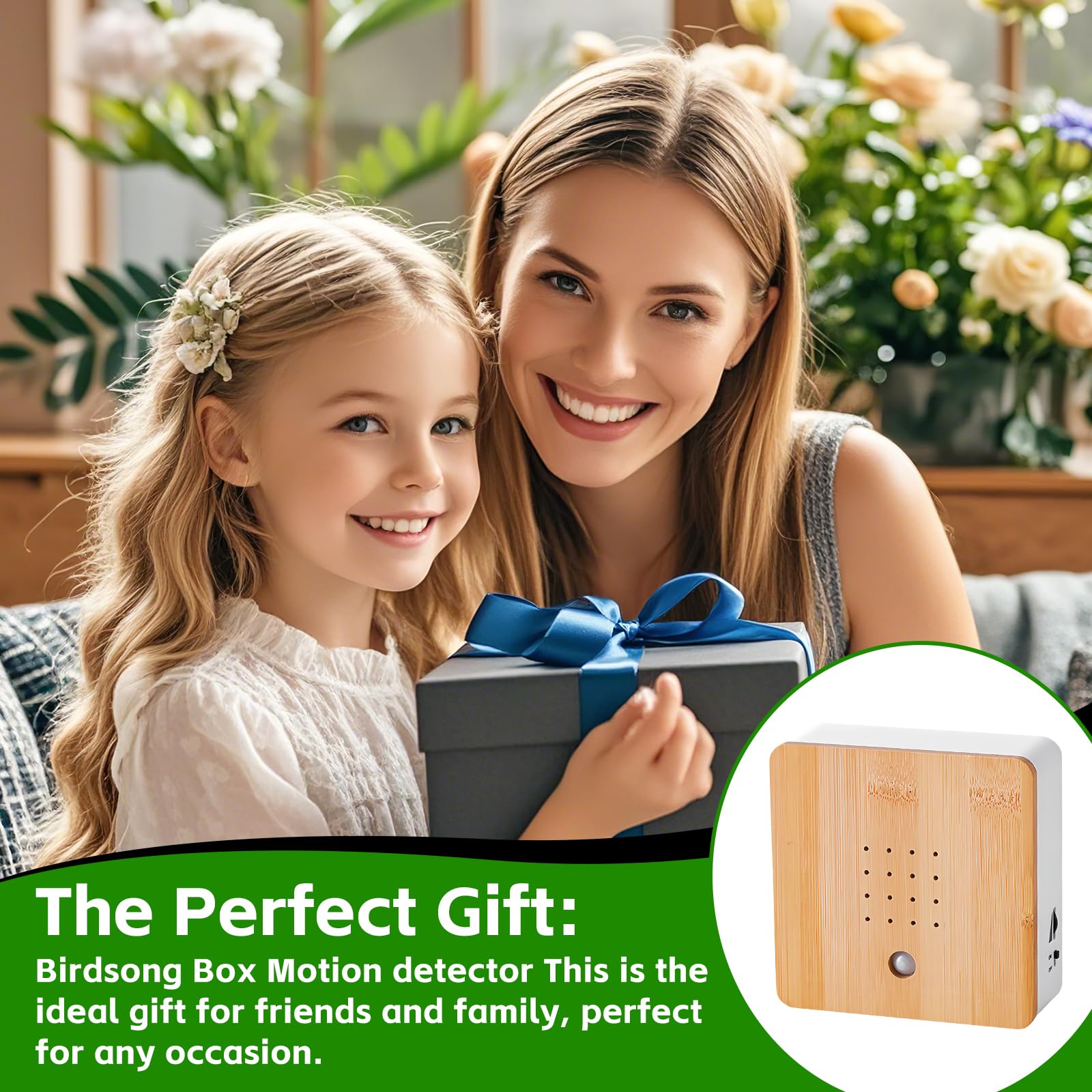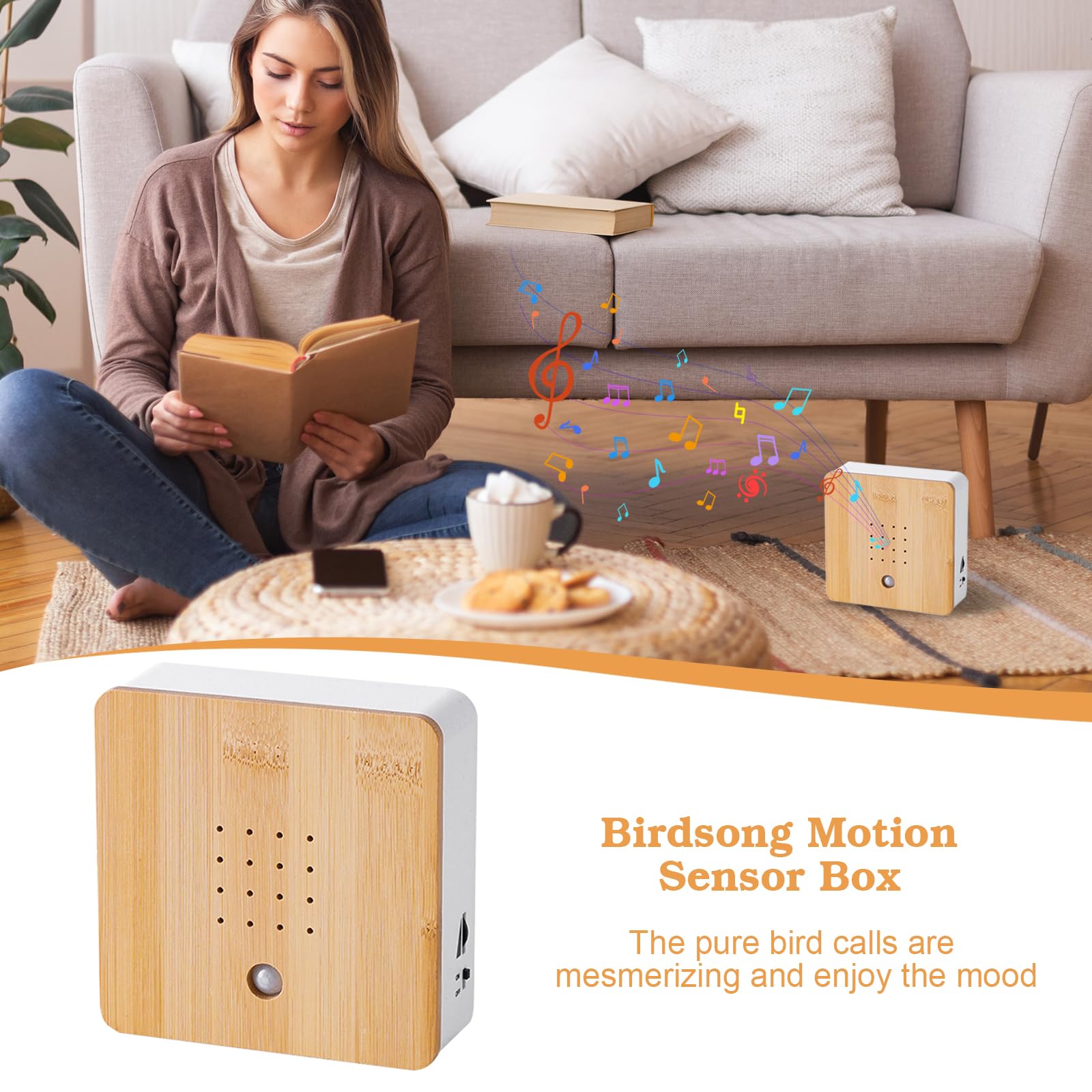 Total entspannend: Diese Vogelgezwitscher Box bringt Natur-Feeling in dein Zuhause! Sobald sich jemand nähert, ertönen realistische Naturgeräusche für etwa 2 Minuten.\\n\\nDas kann die Box:\\n• 11 verschiedene Naturgeräusche\\n• Bewegungsmelder aktiviert den Sound\\n• Timer: 30 Sekunden bis 60 Minuten\\n• 2 Wiedergabemodi (sequentiell/zufällig)\\n\\nEinfach 3 AAA-Batterien rein, Schalter umlegen und schon geht's los. Du kannst sie aufstellen oder an die Wand hängen. Perfekt für Flur, Bad, Wohnzimmer oder Schlafzimmer. Mit Vogelgesang, Meeresrauschen, Bachgeplätscher und mehr. Schafft eine richtig gemütliche Atmosphäre und ist ein super Geschenk!