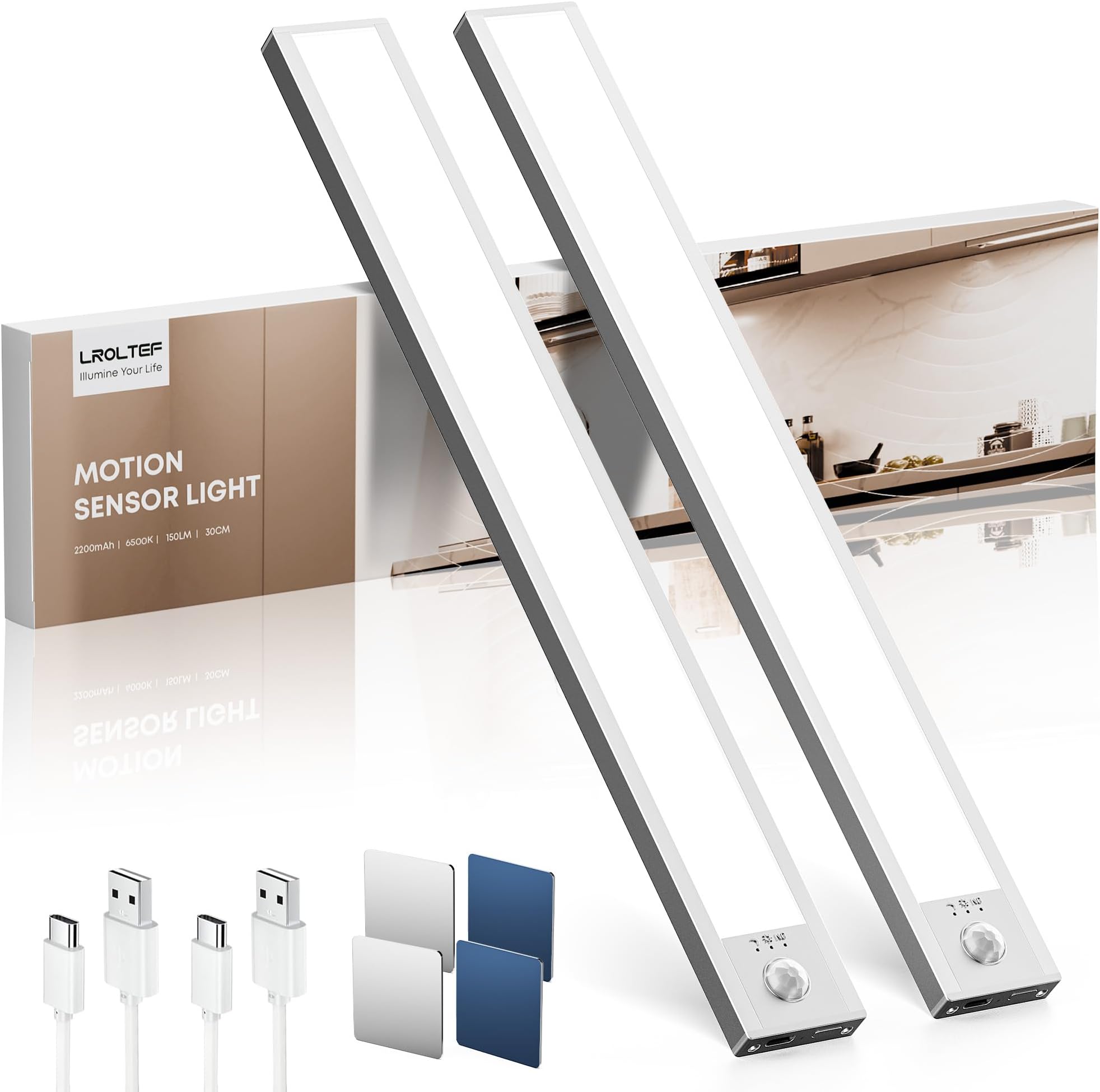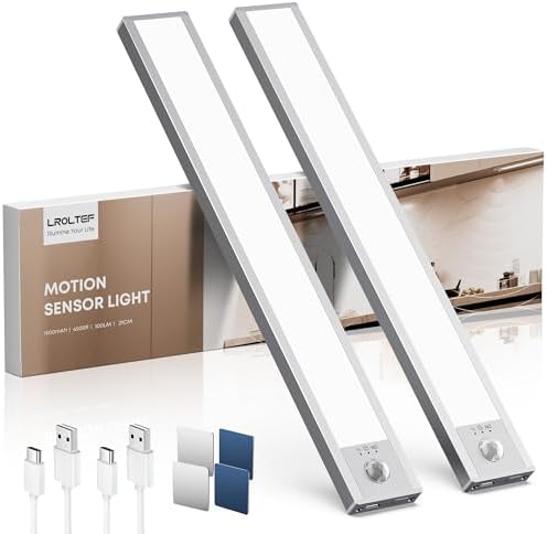 Intelligente Beleuchtung für deine Schränke! Dieses 2er-Set LED-Leuchten mit Bewegungsmelder macht dunkle Ecken endlich hell. Mit 30cm Länge und 3 Farbtemperaturen (3000K Warmweiß, 4000K Naturweiß, 6500K Tageslicht) plus stufenloser Dimmfunktion. Der Bewegungsmelder erkennt Bewegung in 3m Entfernung und schaltet sich nach 20 Sekunden automatisch ab. Mit starkem 2200mAh Akku und USB-C-Anschluss - kabellos und einfach zu installieren. Perfekt für Küchenschränke, Garderoben, Treppen oder Regale. Mit Magneten und Klebepad für flexible Montage. Ladezeit nur 3 Stunden, hält bis zu 3 Monate im Sensormodus!