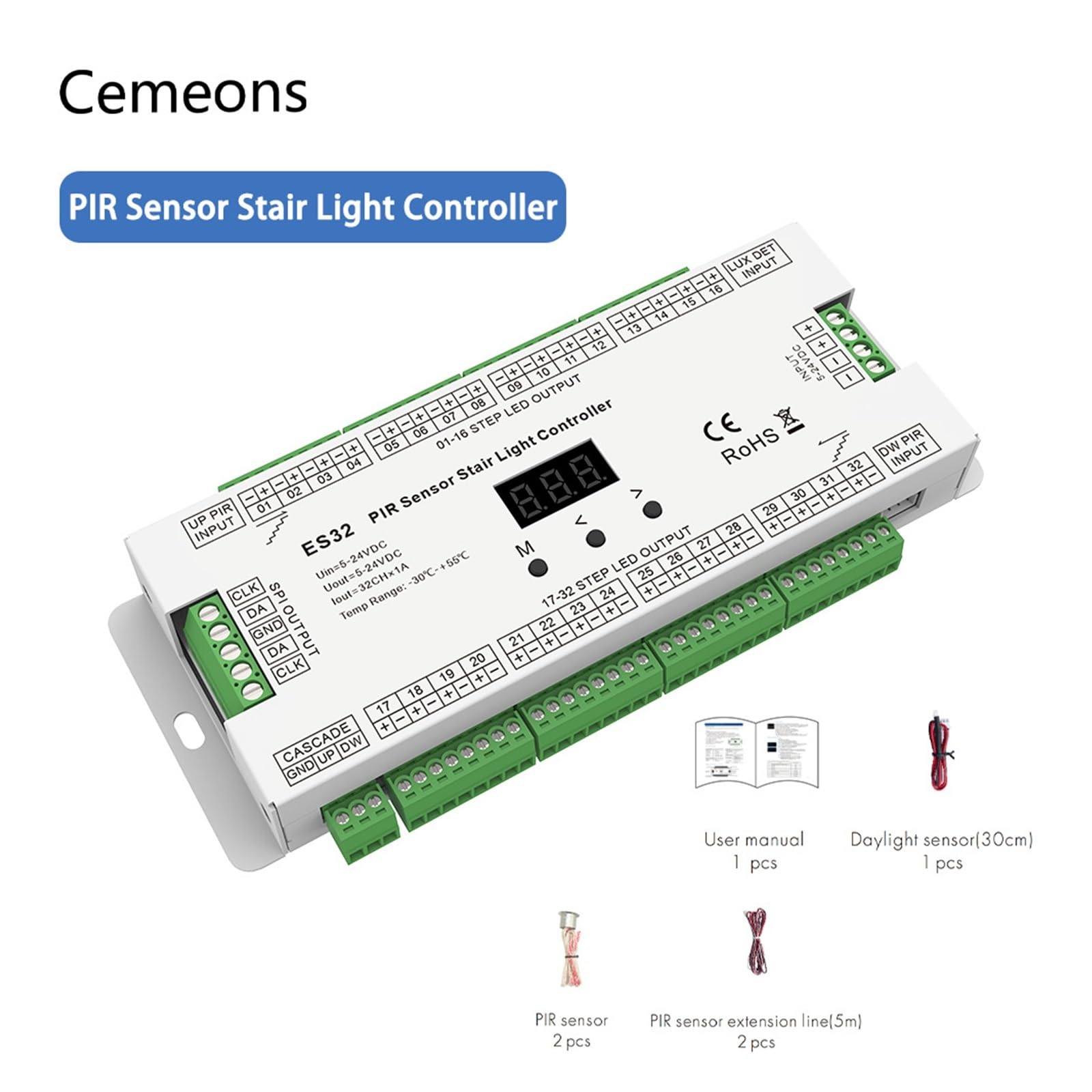 Willkommen in der Zukunft der Treppenbeleuchtung! Dieser geniale 32-Kanal Controller macht deine Treppe zum echten Hingucker. Mit zwei Bewegungsmeldern (120° Erfassungswinkel, 1-3m Reichweite) erkennt er, wenn jemand die Treppe benutzt und lässt die LEDs in coolen Effekten aufleuchten. Einfach zwischen 5 Beleuchtungsmodi wählen und die Geschwindigkeit anpassen - von 0,3 bis 1,2 Sekunden. Besonders praktisch: Der Kurzschlussschutz verhindert Schäden und die DC 12V-24V Spannung ist super sicher. Installation ist kein Hexenwerk: Jede Stufe bekommt ihren eigenen Kanal, unbenutzte Kanäle einfach ignorieren. Perfekt für den Innenbereich - ob Wohnung oder Haus. Deine Gäste werden staunen, wie professionell das aussieht! Einfach anschließen, Sensoren platzieren und genießen. So wird jede Treppe zum Erlebnis!