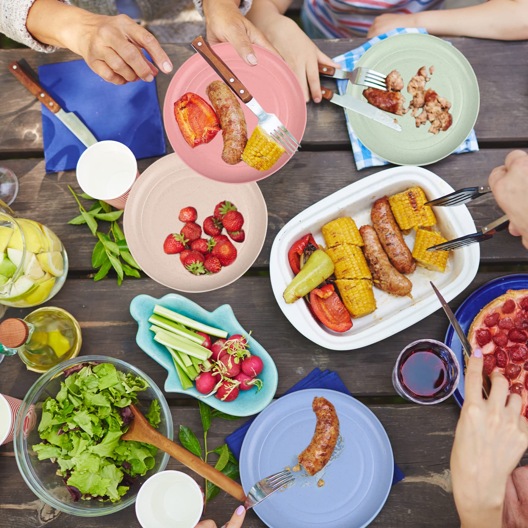 Hey, dieses 5er Set von BieMian ist perfekt für Camping, Picknicks oder Gartenpartys! Die praktischen Plastikteller haben einen Durchmesser von 23cm und sind tief genug für alle möglichen Speisen - ob Frühstück, Mittag- oder Abendessen. Aus hochwertigem Material gefertigt, sind sie exquisit verarbeitet mit glatter Oberfläche und gratfreien Kanten. Super sicher in der Anwendung und dazu noch richtig langlebig und stabil! Der rutschfeste Boden sorgt für sicheren Stand - kein lästiges Verrutschen mehr. Besonders praktisch: Sie sind spülmaschinenfest und können in der Mikrowelle, im Kühlschrank und Gefrierschrank verwendet werden. Einfach reinigen und wiederverwenden - so machst du weniger Müll! Perfekt für Geburtstagsfeiern, Hochzeiten, Junggesellenabschiede, Grillabende oder Familienfeiern. In 5 verschiedenen Farben erhältlich - da ist für jeden Geschmack was dabei! Leicht und einfach zu transportieren - ideal also für unterwegs. Einfach einpacken und los geht's zum nächsten Picknick-Abenteuer!