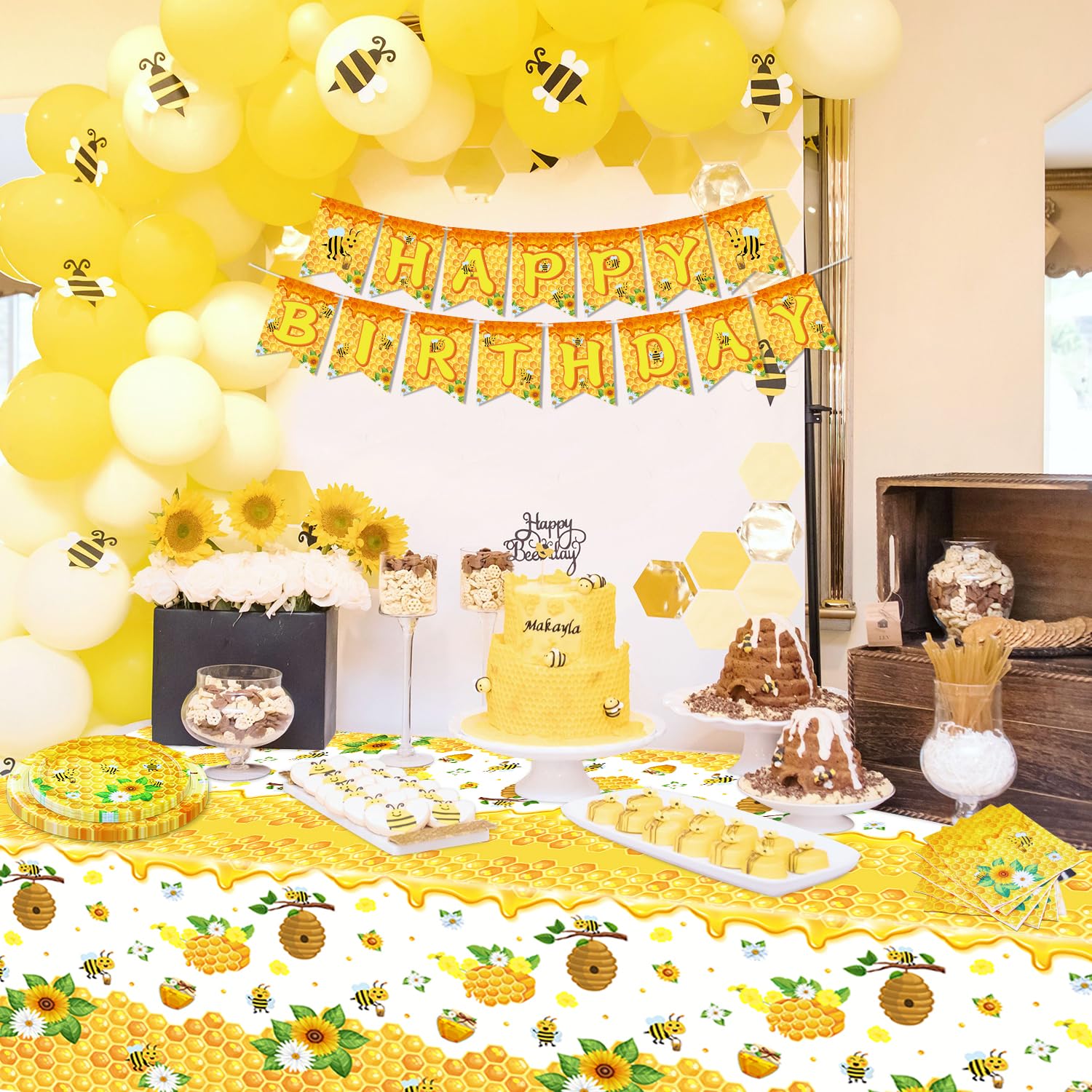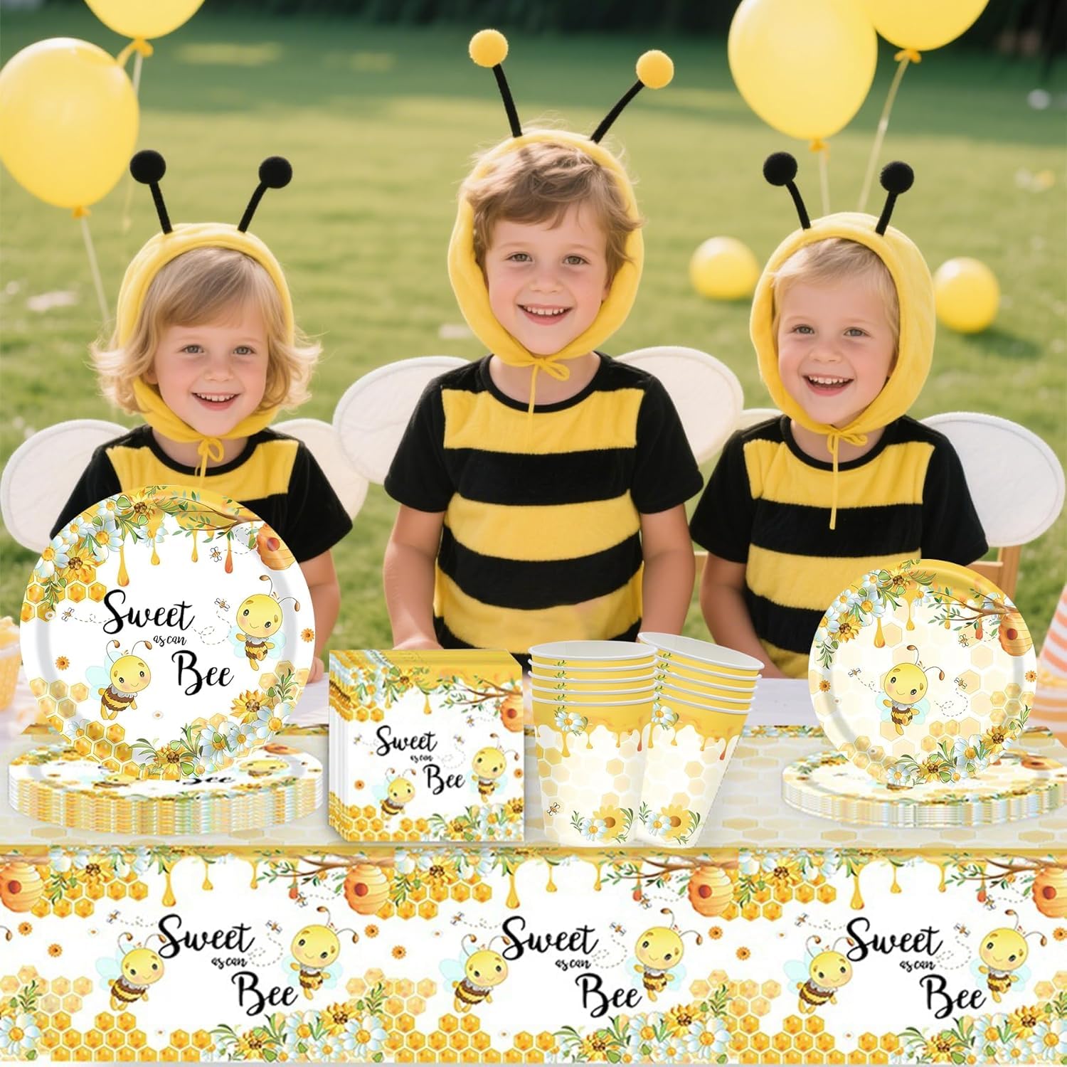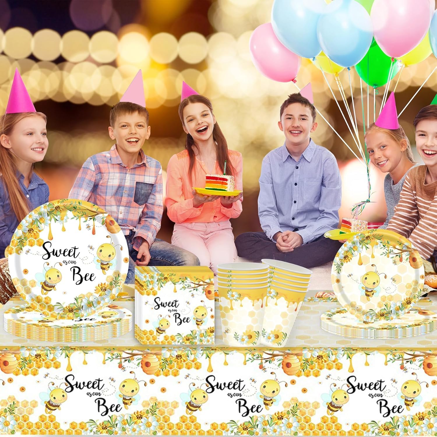 Alles für die perfekte Bienen-Party! Dieses 52-teilige Set hat alles was du brauchst: 10 große Teller (23cm), 10 kleine Teller (18cm), 10 Becher, 20 Servietten, 1 Tischdecke und 1 Happy Birthday Banner. Alles im süßen Bienen-Design mit Honigwaben und Blumen. Aus stabilem, lebensmittelechtem Papier - sicher für Kinder und umweltfreundlich. Für bis zu 10 Gäste perfekt. Einfach aufbauen, dekorieren und feiern! Nach der Party einfach wegwerfen - kein Spülen nötig. Perfekt für Kindergeburtstage, Gartenfeste, Picknicks oder Familienfeiern. Macht jede Party zum summenden Erfolg!
