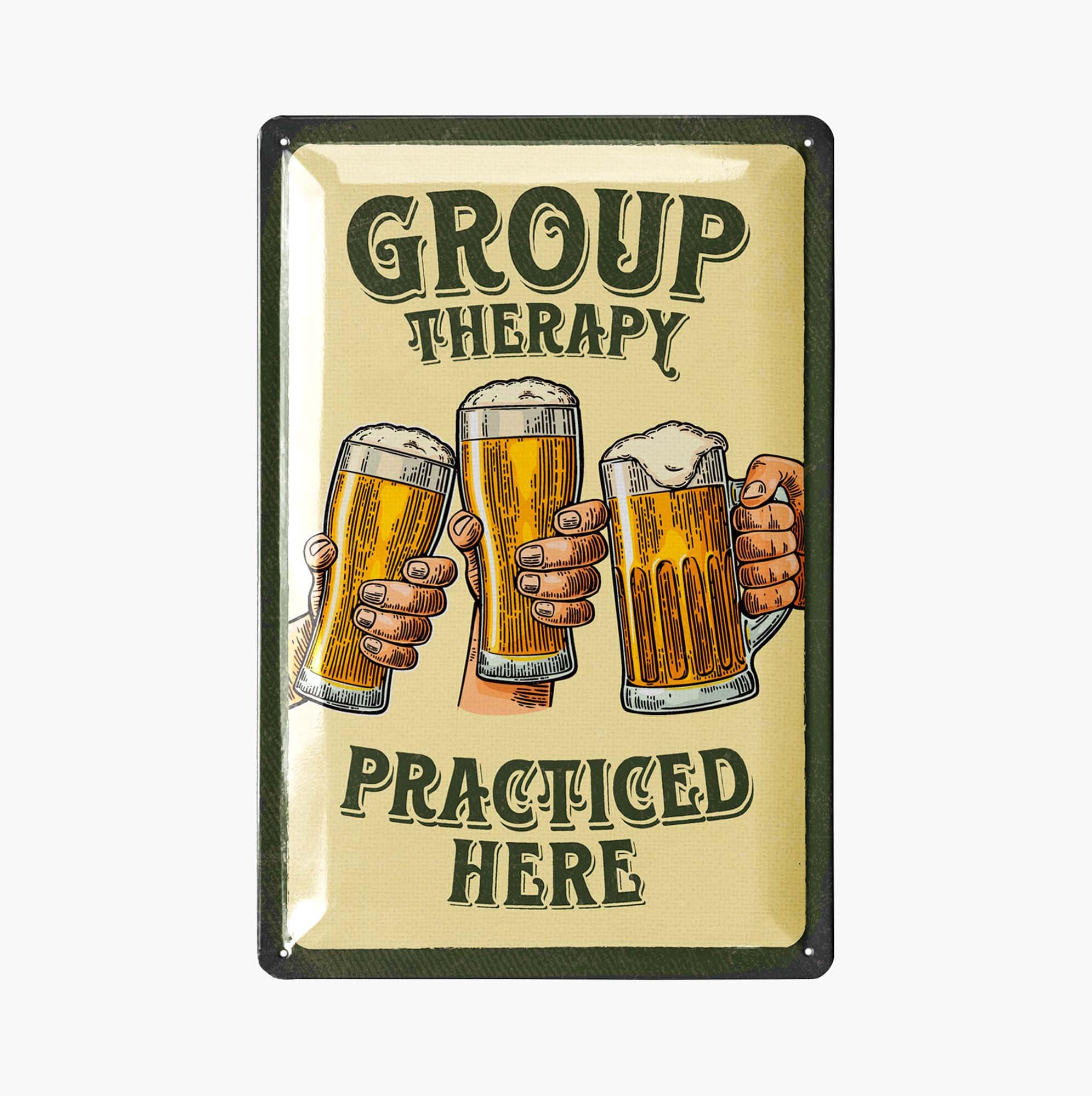 Das perfekte Geschenk für jeden Bierliebhaber! Dieses coole LANOLU Blechschild mit dem Spruch 'Gruppentherapie' bringt jeden Biertrinker zum Schmunzeln. In robusten 20x30cm aus dickem Stahlblech.