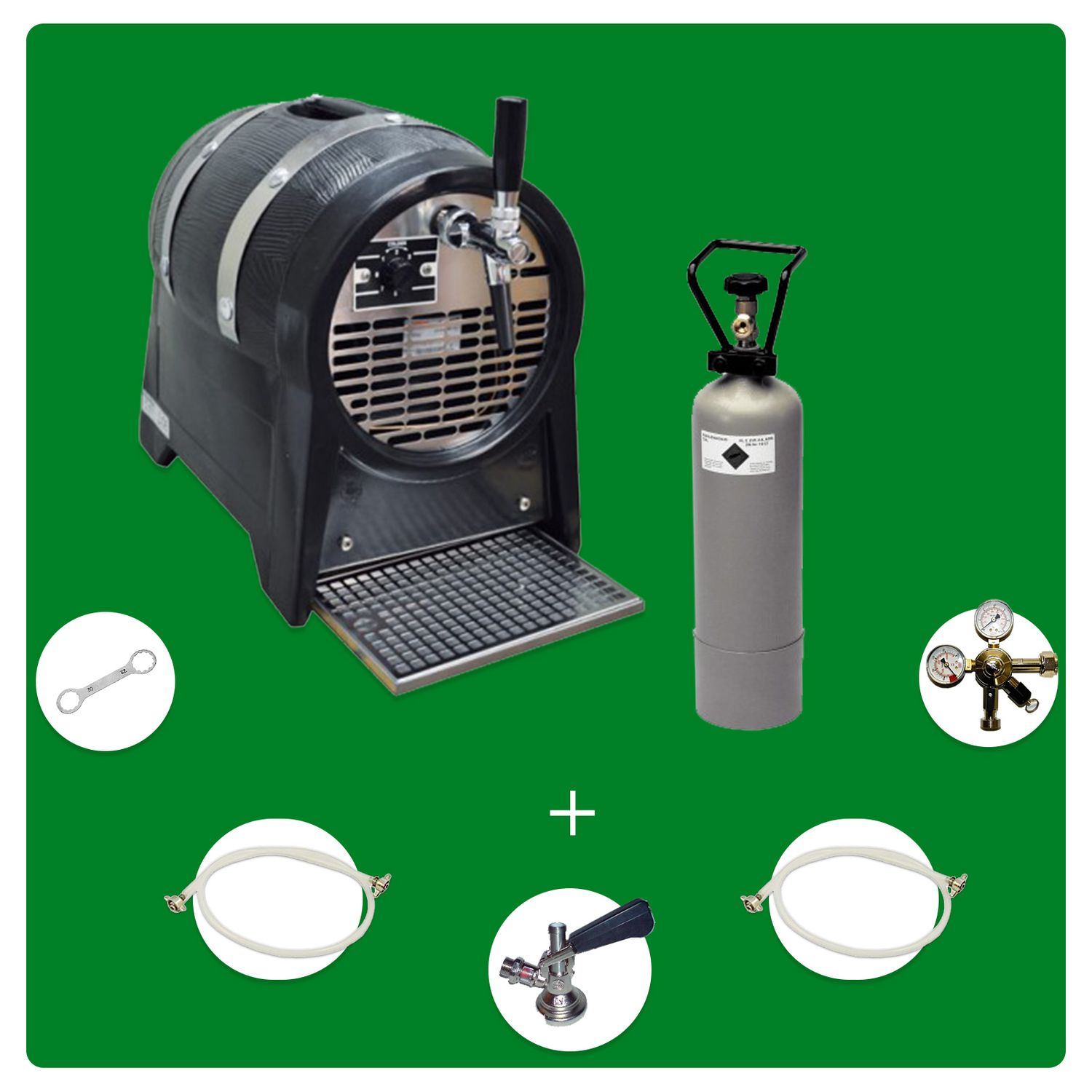 Mit der beiliegenden Rechnung und 2 Jahren Garantie bist du auf der sicheren Seite. Das Einzige, was du noch brauchst, sind die Bierfässer - den Rest liefert dieses Set komplett.