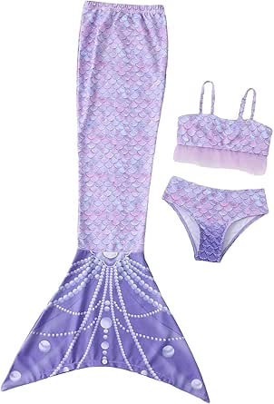 Deine kleine Prinzessin wird sich fühlen wie eine echte Meerjungfrau mit diesem niedlichen 3-teiligen Bikiniset! Das Set besteht aus Top, Slip und einer magischen Schwanzflosse mit glitzerndem Fischschwanz-Design. Aber es ist nicht nur hübsch - der integrierte UV-Schutz 50+ schützt die zarte Kinderhaut vor der Sonne, perfekt für Strandtage oder Schwimmbadbesuche. Das Material ist chlorbeständig, atmungsaktiv und trocknet super schnell. Die dehnbaren Doppelgummi-Bündchen sorgen dafür, dass nichts verrutscht, selbst beim wildesten Herumtoben. Die Flosse hat unten Anti-Rutsch-Noppen, damit dein Kind sicher laufen kann. Es gibt fünf Größen von 110 bis 150 - am besten misst du dein Kind vor der Bestellung. Ideal für Schwimmunterricht, Sommerurlaub oder Kindergeburtstage. Und keine Sorge: Die pflegeleichten Materialien sind hautfreundlich und ohne chemische Zusätze. Einfach in der Maschine waschen (aber bitte kühl) und der Badespaß kann immer wieder losgehen!