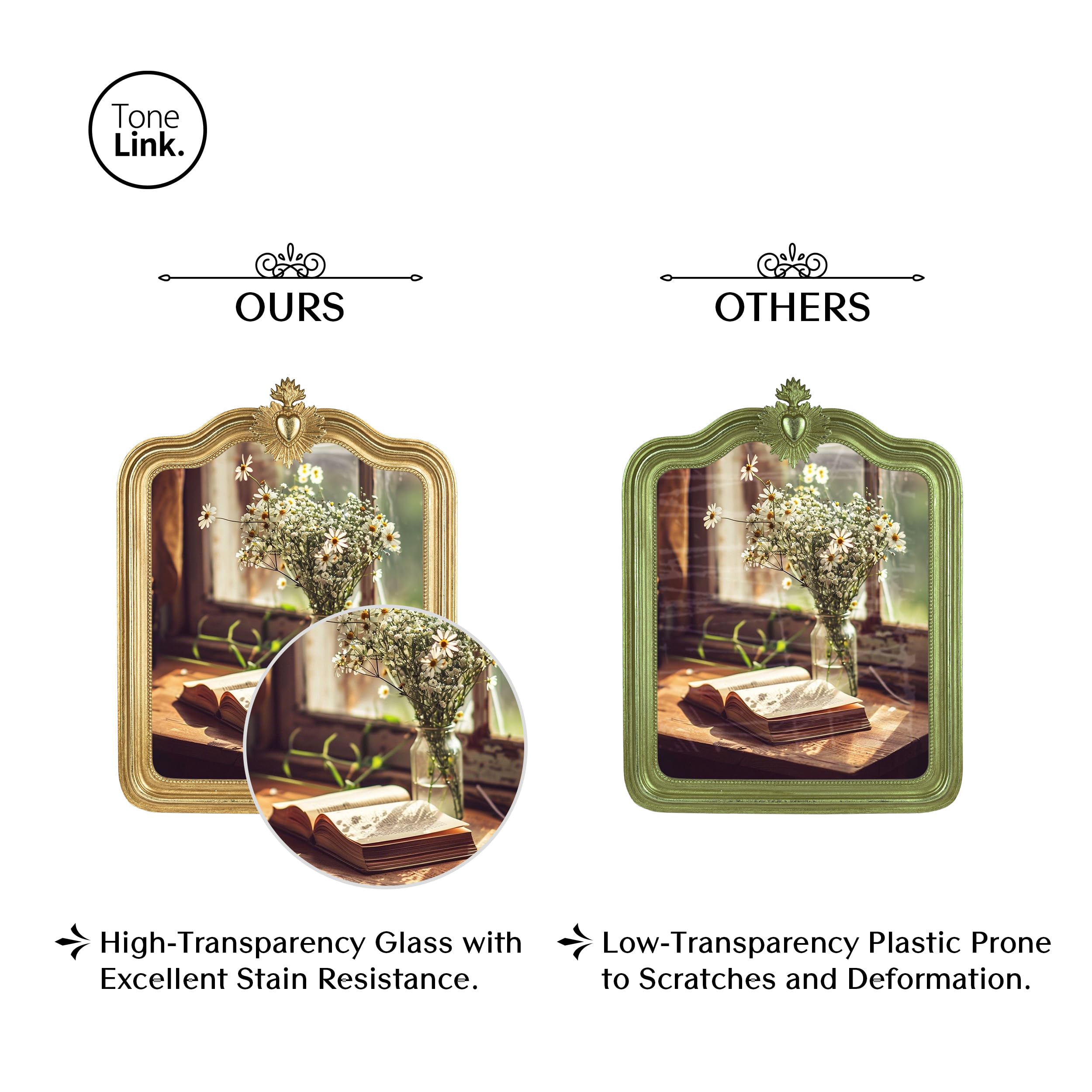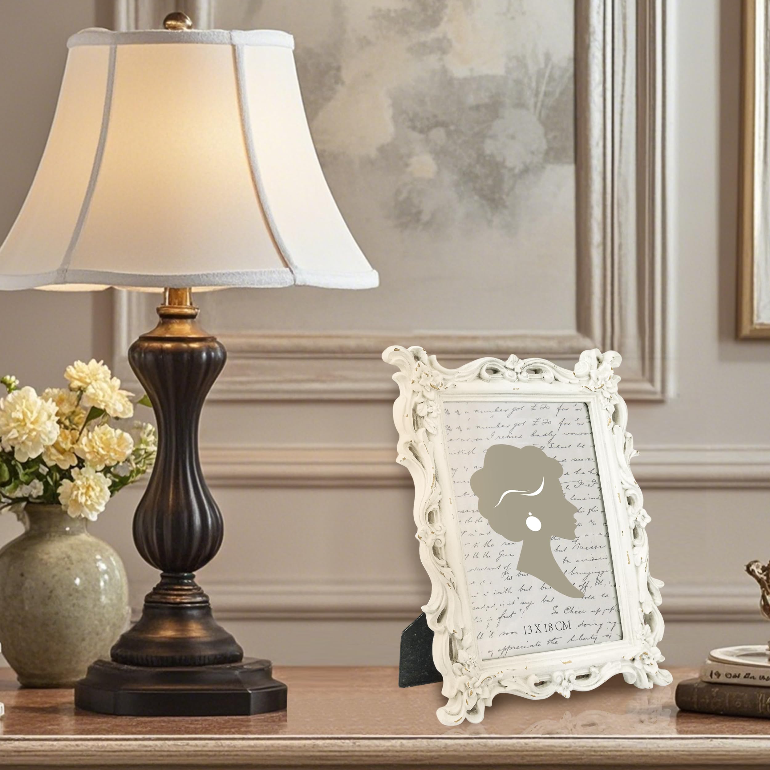 Suchst du einen ganz besonderen Rahmen für deine liebsten Erinnerungsfotos? Dieser wunderschöne Vintage-Bilderrahmen von Tone Link verleiht jedem Bild eine ganz besondere Note! Im klassischen 5x7 Zoll Format (12,7x17,8 cm) passt er perfekt für deine schönsten Schnappschüsse. Das kunstvoll gearbeitete Polyresin-Design in eleganter Gold-Optik verbreitet sofort nostalgisches Flair und passt sich sowohl traditionellen als auch modernen Einrichtungsstilen an. Die schmutzabweisende Glasfront schützt dein Foto zuverlässig vor Beschädigungen und lässt die Farben intensiv wirken. Besonders praktisch: Der Rahmen kann sowohl auf dem Tisch mit integrierter Staffelei als auch an der Wand mit den vorhandenen Aufhängevorrichtungen präsentiert werden - horizontal oder vertikal. Perfekt für Wohnzimmer, Schlafzimmer, Büro oder als besonderes Geschenk für Geburtstage, Weihnachten, Hochzeiten oder Jahrestage. Verwandele gewöhnliche Fotos in außergewöhnliche Kunstwerke und verleihe deinem Zuhause eine persönliche Note mit diesem charmanten Vintage-Rahmen - ein zeitloser Klassiker, der immer im Trend bleibt!