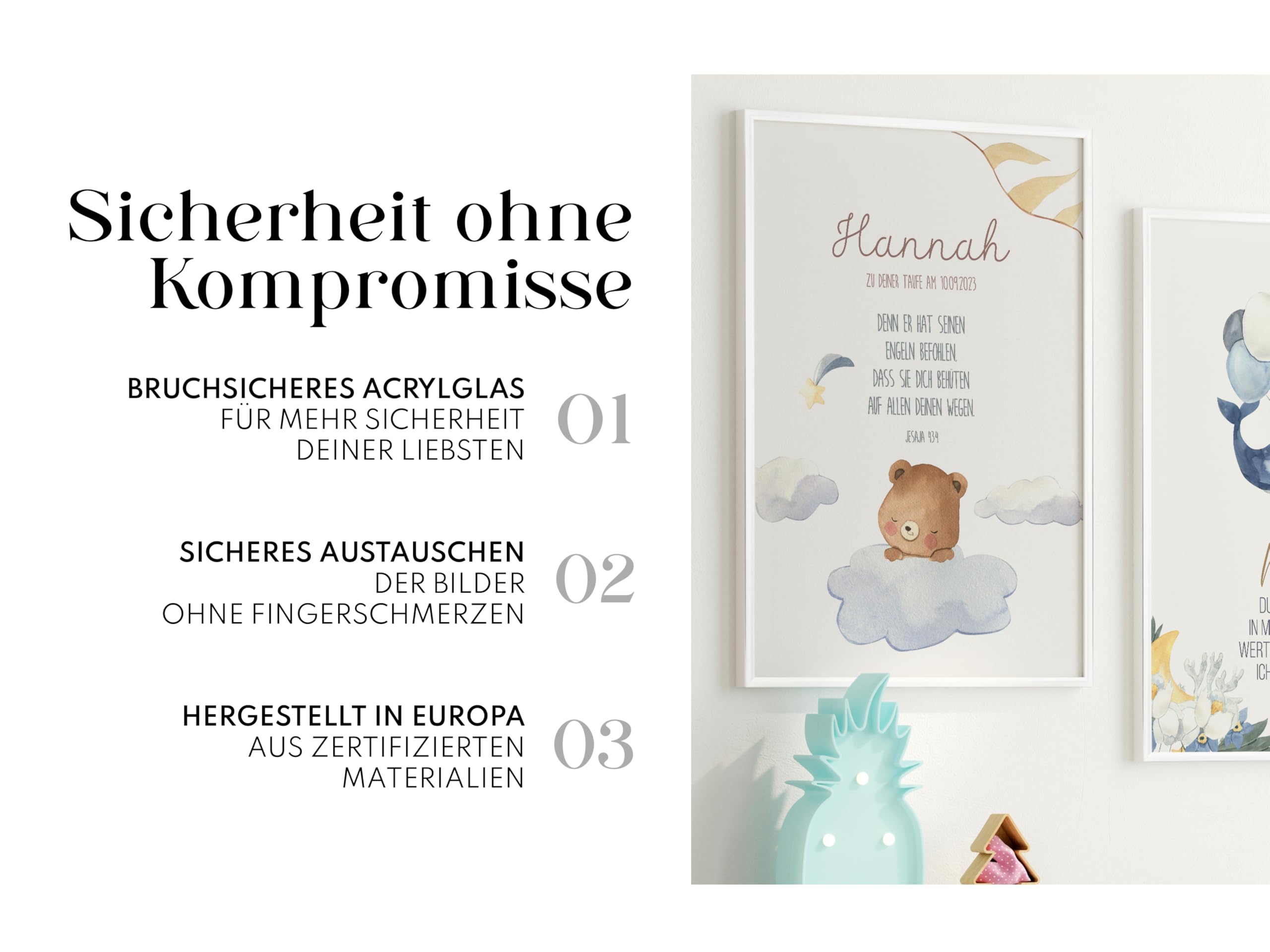 Dein Lieblingsposter verdient den perfekten Rahmen! Dieser Texas-Rahmen in Silber (37x57 cm) kommt mit Acrylglas und weißer Rückwand. Super einfach zu befüllen – seitlich einklemmen, fertig. Auch in Sondergrößen möglich! Einfach nächstgrößeres Format bestellen und uns dein Wunschmaß schicken. Sieht clean aus, hängt sicher an der Wand und schützt dein Bild. Achtung: Nicht für Puzzle geeignet.