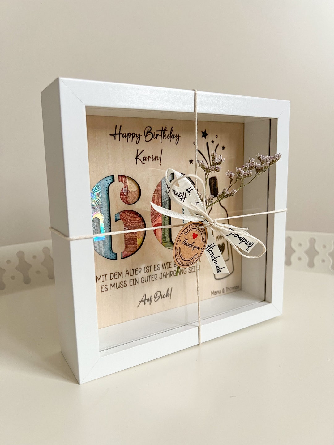Alter, dieser Geldgeschenk-Rahmen ist ja mal die geniale Alternative zu langweiligen Umschlägen! Stell dir vor: Du verpackst Geld in einem stylischen A4-Bilderrahmen mit diesem coolen Million-Design - das sieht nicht nur ultra-impressiv aus, sondern ist auch noch mega persönlich. Der Rahmen hat ne bruchsichere Acryl-Front und kommt sowohl mit Aufhängung als auch nem verstellbaren Tischständer. Perfekt für Geburtstage, Abschlussfeiern oder einfach so als besondere Aufmerksamkeit. Einfach die hintere Klappe öffnen, Geldscheine arrangieren und fertig ist das perfekte Geschenk. Damit machst du garantiert mehr her als mit nem einfachen Umschlag - und der Beschenkte hat noch lange was davon. Echt ne coole Idee für alle, die mal was Anderes als die üblichen Geschenke verschenken wollen!