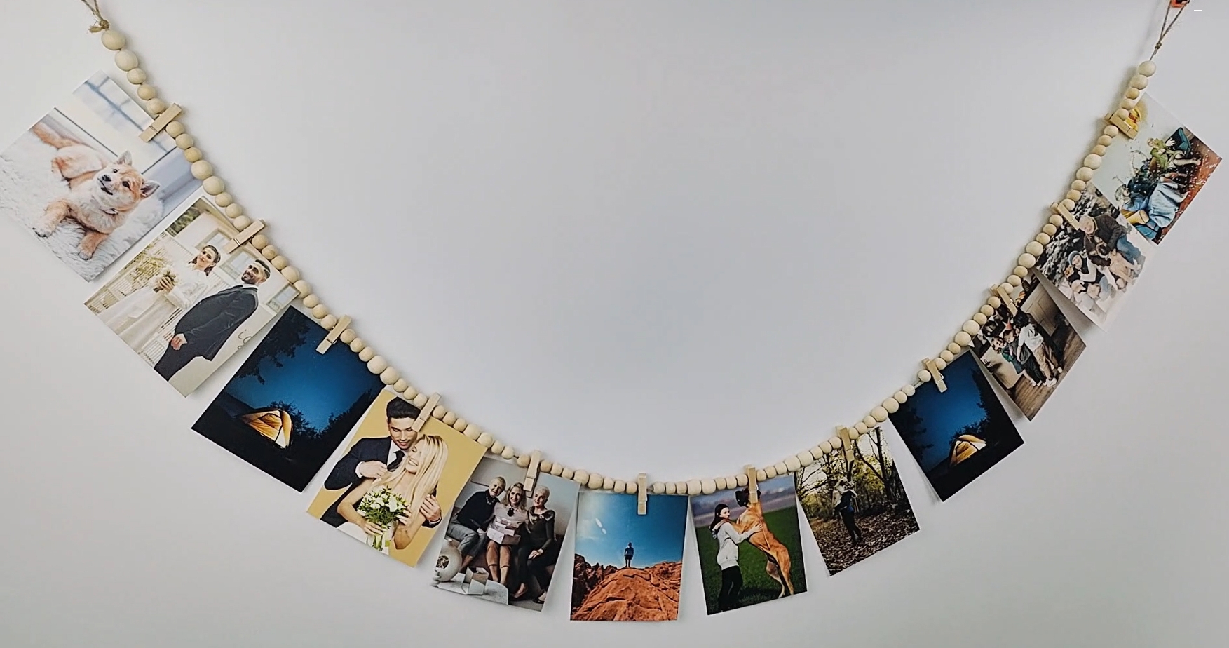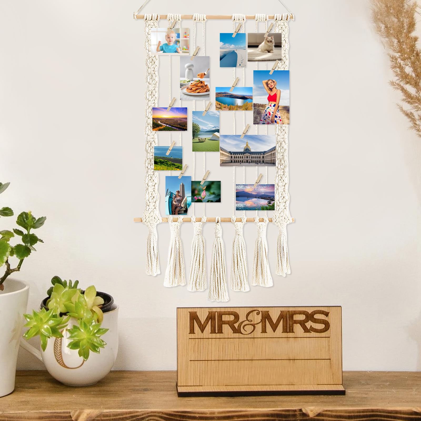 Willst du deine Erinnerungen stylisch an die Wand bringen? Mit der IETWATE Fotowand wird's was! Dieses Set kommt mit 30 süßen Holzclips und zwei spurlosen Nägeln - alles, was du brauchst, um deine Fotos, Postkarten oder Zeichningen aufzuhängen. Der Bohemien-Look mit natürlicher Baumwollschnur und Holzclips passt super in Wohnzimmer, Schlafzimmer oder Büro. Einfach die Schnur anbringen, Fotos einklemmen, und schon hast du deine persönliche Galerie. Perfekt für Geburtstage, Hochzeiten, oder einfach nur, um die schönen Momente des Lebens festzuhalten. Kombinier sie mit Lichterketten oder Trockenblumen für noch mehr Charme. Und wenn du umziehst? Kein Problem, die Nägel hinterlassen keine Spuren! Also, mach deine Wand zur Geschichten-Wand - mit der IETWATE Fotowand wird's persönlich und gemütlich!