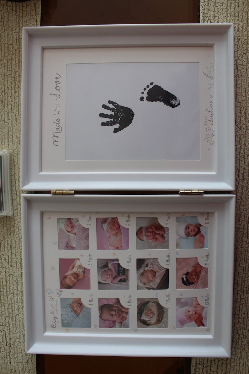 Baby Erstes Jahr Bilderrahmen - Mit Hand- & Fußabdruck Set In Weiß
