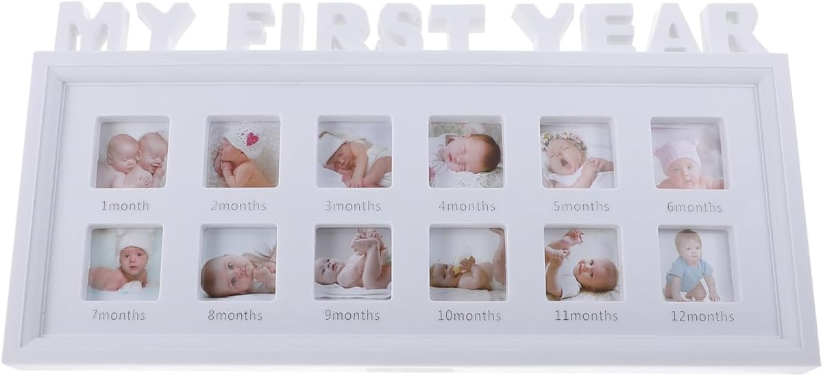 Halte die süßesten Momente deines Babys fest! Dieser wunderschöne Bilderrahmen aus Massivholz begleitet euch durch das erste aufregende Jahr. Platz für 12 Fotos - für jeden Monat ein Erinnerungsfoto! Inklusive Stempelkissen für niedliche Hand- und Fußabdrücke. Mit 24x38 cm perfekt fürs Babyzimmer, Wohnzimmer oder als Geschenk für stolze Großeltern. Zeitloses weißes Design passt zu jedem Einrichtungsstil. Mach die rasante Entwicklung deines Kleinen sichtbar und schaffe eine bleibende Erinnerung, die ihr ein Leben lang schätzen werdet. Perfekt für Baby-Duschen, Geburten oder Taufen!