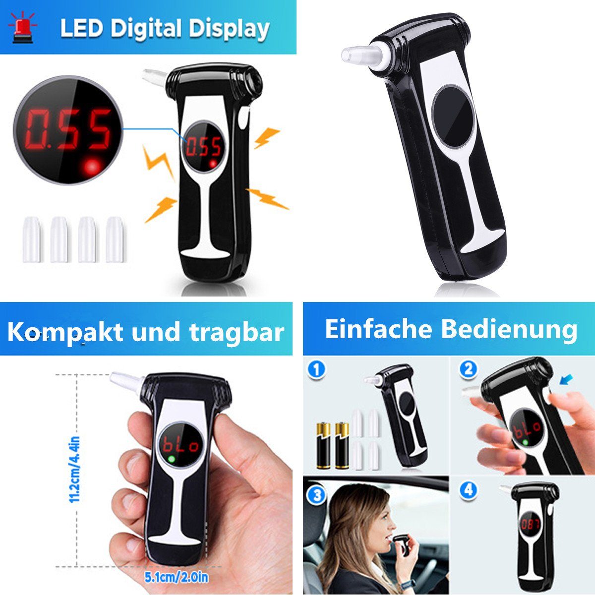 Dieser ZBK Alkoholtester ist total hygienisch - du musst nichts anfassen, einfach pusten und schon siehst du deinen Wert! Mit super präzisem Sensor, der nur auf Alkohol reagiert und andere Gase ignoriert. Der große HD-Bildschirm zeigt alles super klar an, und die LED-Lichter (grün = okay, rot = Vorsicht) geben dir sofort Bescheid. Praktisch: Eingebaute Taschenlampe für nächtliche Tests und USB-C Schnellladung - nie mehr leer! Speichert bis zu 50 Messungen, perfekt für Firmen oder zum Tracken deiner Werte. Ob auf der Arbeit, nach der Feier oder einfach so - dieses Teil gibt dir Sicherheit. Einfach zu bedienen, professionelle Ergebnisse für zu Hause. Macht auch als Geschenk eine super Figur - für alle, die verantwortungsvoll unterwegs sein wollen!