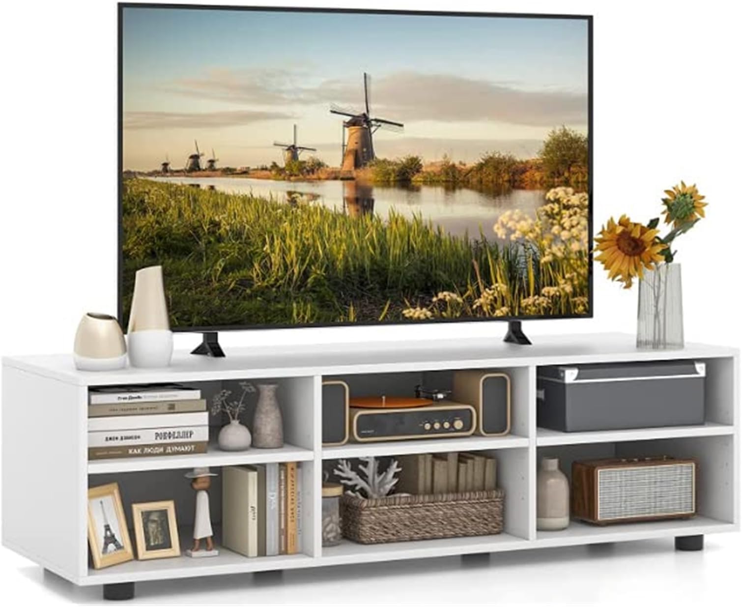 Wow, dieser TV-Schrank ist genau das, was dein Wohnzimmer braucht! Im coolen Vintage-Industrial-Design mit braunen Holzoptik-Platten und schwarzen Metallgriffen sieht er einfach klasse aus. Mit 140cm Breite bietet er perfekt Platz für deinen 50-60 Zoll Fernseher. Und das Beste: Du kriegst deine ganze Technik unter Kontrolle! Zwei höhenverstellbare offene Fächer für Konsolen wie PS5 oder Xbox, plus zwei geschlossene Schränke für Router und Kabel - endlich kein Kabelsalat mehr! Die gedämpften Scharniere sind super leise, und die rutschfesten Füße sorgen für stabilen Stand. Aus FSC-zertifiziertem Material und super einfach zusammenzubauen - selbst wenn du noch nie was montiert hast. Dein Wohnzimmer wird zum absoluten Wohlfühlbereich!
