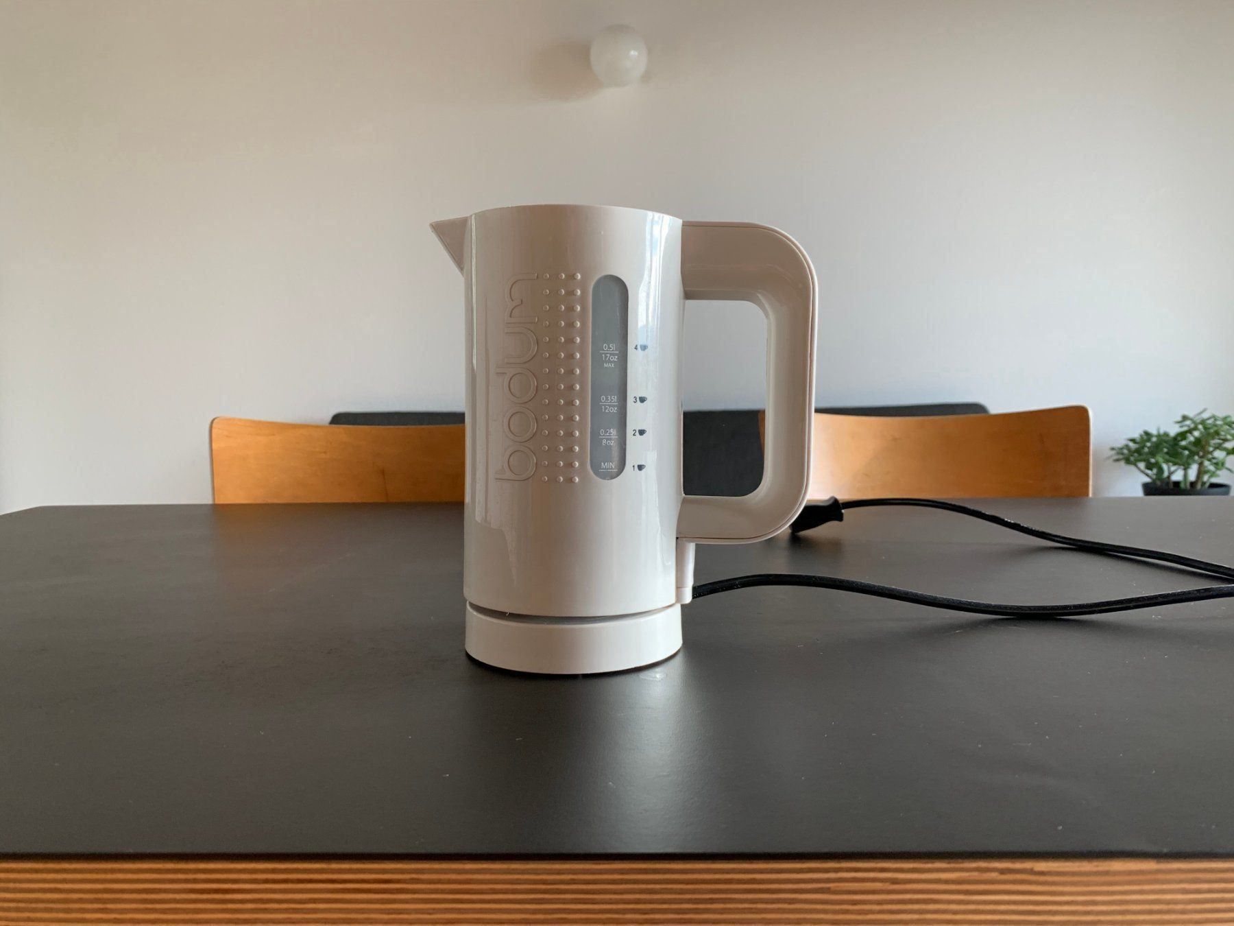 Dieser stylische Bodum Wasserkocher macht das Wasserkochen zum Erlebnis! Mit 700 Watt Leistung ist er super schnell und spart dabei noch Energie.\n\nFeatures:\n• 0,5 Liter Fassungsvermögen\n• 700 Watt Leistung\n• Automatisches Abschalten\n• Überhitzungsschutz\n• Kabelloser Sockel\n\nDas verdeckte Heizelement kommt nicht mit Wasser in Kontakt - das bedeutet weniger Kalk und längere Lebensdauer. Der transparente Wasserstandsanzeiger zeigt genau, wie viel Wasser drin ist.\n\nPerfekt für:\n• Morgendlichen Kaffee\n• Abendlichen Tee\n• Schnelle Tütensuppen\n• Baby-Nahrung zubereiten\n\nEinfach Wasser einfüllen, Knopf drücken und in wenigen Minuten ist das Wasser fertig. Der Deckel öffnet sich per Knopfdruck - praktisch und sicher!\n\nIn cremefarbenem Design passt er perfekt in jede moderne Küche.
