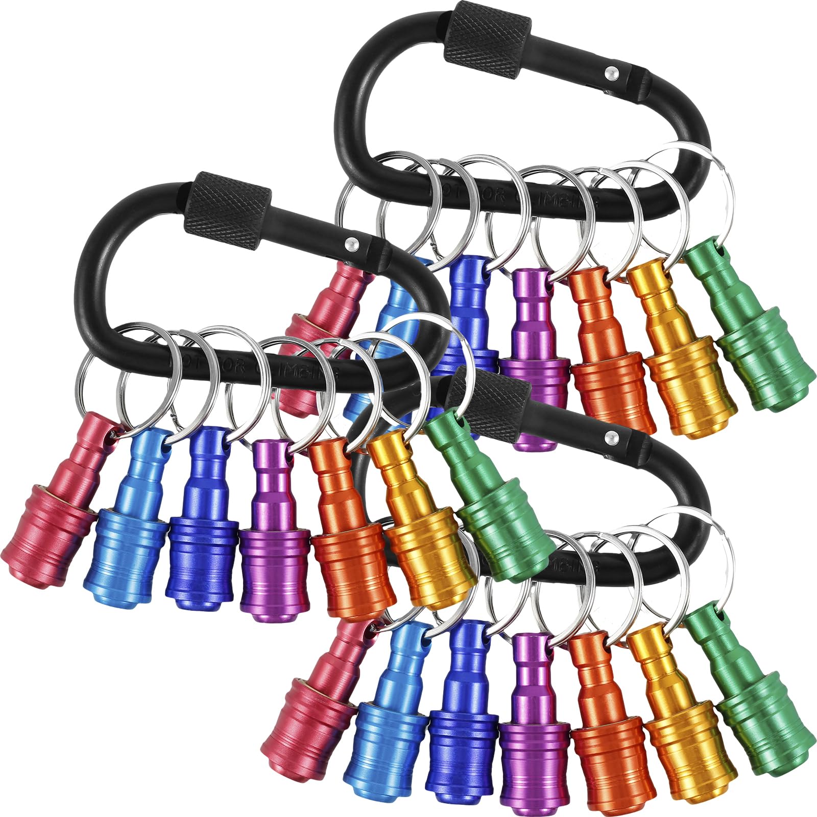 Immer die richtigen Bits griffbereit! Dieses 6-teilige Bithalter-Set ist dein praktischer Helfer für unterwegs. Mit 1/4 Zoll Aufnahme - passt zu den meisten Bits. Aus robuster Aluminiumlegierung mit Rostschutz-Beschichtung. Einfache Bedienung: Schale nach unten drücken, Bit einsetzen, fertig! Der Kugelverschluss hält bis zu 3,3 Pfund (1,5kg) sicher fest. Inklusive schwarzem Karabiner - einfach am Schlüsselbund oder Gürtel befestigen. Verschleißfest und kratzfest für lang anhaltende Nutzung. Perfekt für Handwerker, Heimwerker oder als Notfall-Set im Auto. Praktischer geht's kaum - immer die richtigen Bits dabei!