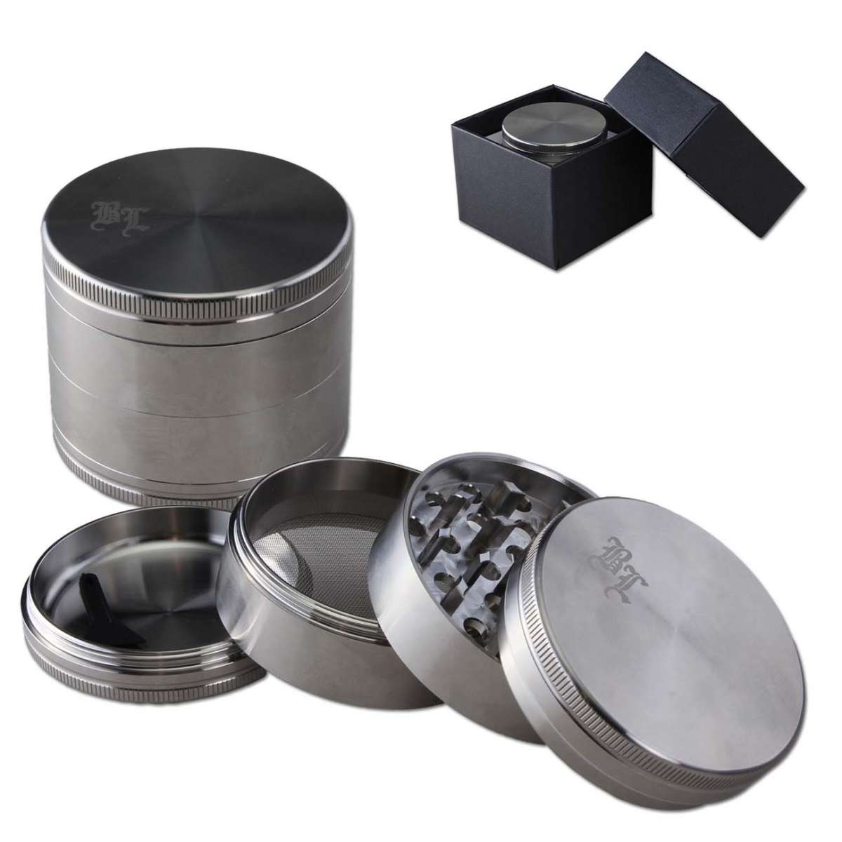 Black Leaf Edelstahl Grinder 4-teilig - Inkl. Pollensieb & Schaber Im Geschenkset
