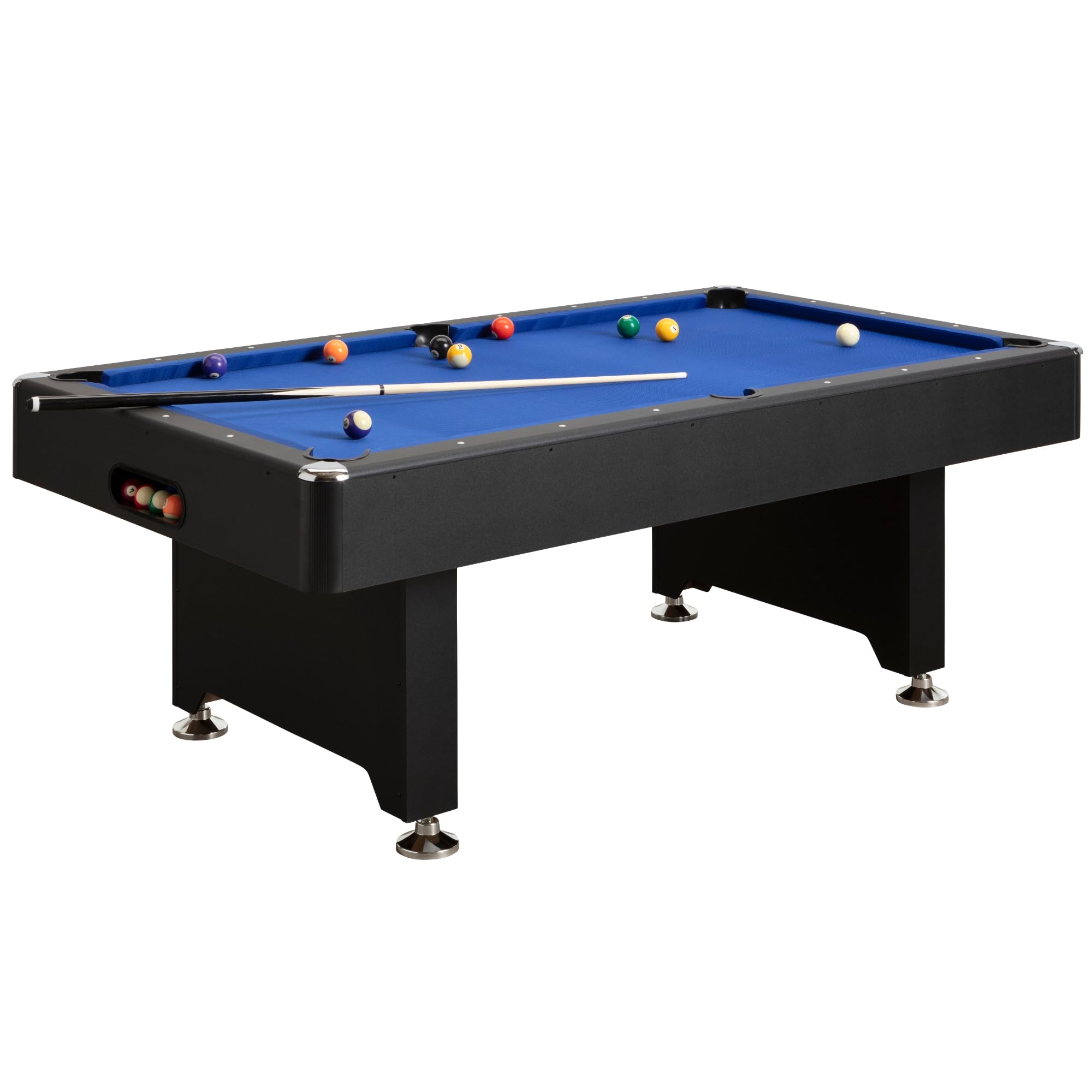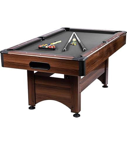 Billard-Feeling für daheim! Der Winsport Blackstar Billardtisch bringt den Spaß des Poolspiels direkt in dein Wohnzimmer. Erhältlich in 5ft oder 6ft Größe - perfekt für Familien, Kinder oder Jugendzimmer. Mit 12cm starken Balkenfüßen und Querverstrebungen steht er bombenfest. Die höhenverstellbaren Füße gleichen Bodenunebenheiten aus. Das blaue Billardtuch auf der 20mm starken Spielplatte sorgt für perfektes Kugelrollen, während die Naturgummibanden für präzisen Rücklauf sorgen. Praktisch: Automatischer Ballrücklauf für einfaches Spielen. Im Lieferumfang ist alles dabei: 2 Queues, Billardkögel, Triangel und Kreide. Der Korpus kommt schon vormontiert - du musst nur noch die Beine anschrauben. Schwarzes Design mit chromfarbenen Ecken sieht einfach stylisch aus. Perfekt für gemütliche Spieleabende mit Freunden oder Familien-Turniere!
