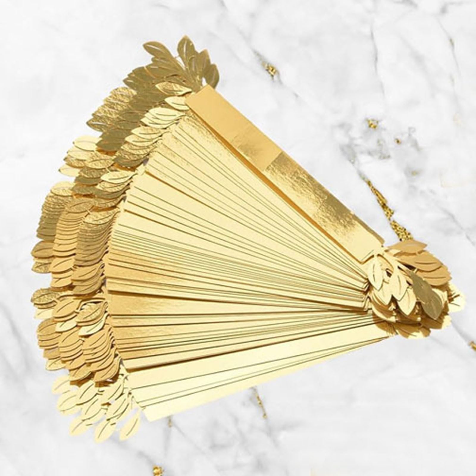 Mach deine Tischdeko richtig edel! Dieses Set mit 50 goldenen Serviettenringen im zarten Blatt-Design verwandelt jeden Esstisch in ein richtiges Highlight. Die hohlen Ringe aus hochwertigem Papier mit ihrer spiegelnden Oberfläche glänzen super elegant im Licht. Einfach die Serviette durchstecken - schon hat deine Tafel einen richtig festlichen Look! Perfekt für Hochzeiten, Geburtstage, Weihnachtsfeiern oder romantische Dinner zu zweit. Mit 21,7 cm Länge und 3,7 cm Breite passen sie zu allen gängigen Servietten. Reinigen geht easy - einfach abwischen. Aber Vorsicht: Nicht zu fest drücken, die filigranen Blatt-Verzierungen sind zart! Das Set reicht auch für größere Feiern und macht sich super in Restaurants, Hotels oder einfach daheim. Für nur wenig Geld kriegst du hier richtig viel Stil - deine Gäste werden begeistert sein!