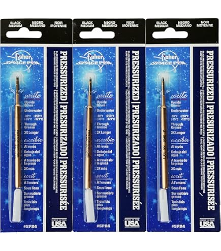 Kennst du die legendären Fisher Space Pen Kugelschreiber? Hier ist die passende Mine dazu! Die Druckpatrone mit feiner Spitze und blauer Tinte schreibt superklar und zuverlässig. Egal in welcher Position - die Mine funktioniert immer, dank des Druckpatronensystems. Perfekt als Ersatz für deinen Space Pen oder wenn du mal was Besonderes suchst. Die Tinte ist übrigens langlebig und verwischt nicht. Modellnummer: SPR1 F. Internationale Produkte haben manchmal andere Spezifikationen, aber die Qualität stimmt auf jeden Fall! Ob im Alltag oder unterwegs - mit dieser Mine schreibst du einfach perfekt. Nicht umsonst vertrauen sogar Astronauten auf diese Technologie! Einfach einsetzen und von der premium Schreibqualität überzeugt sein. Kleiner Tipp: Passt in alle Space Pen Modelle, die diese Mine verwenden.