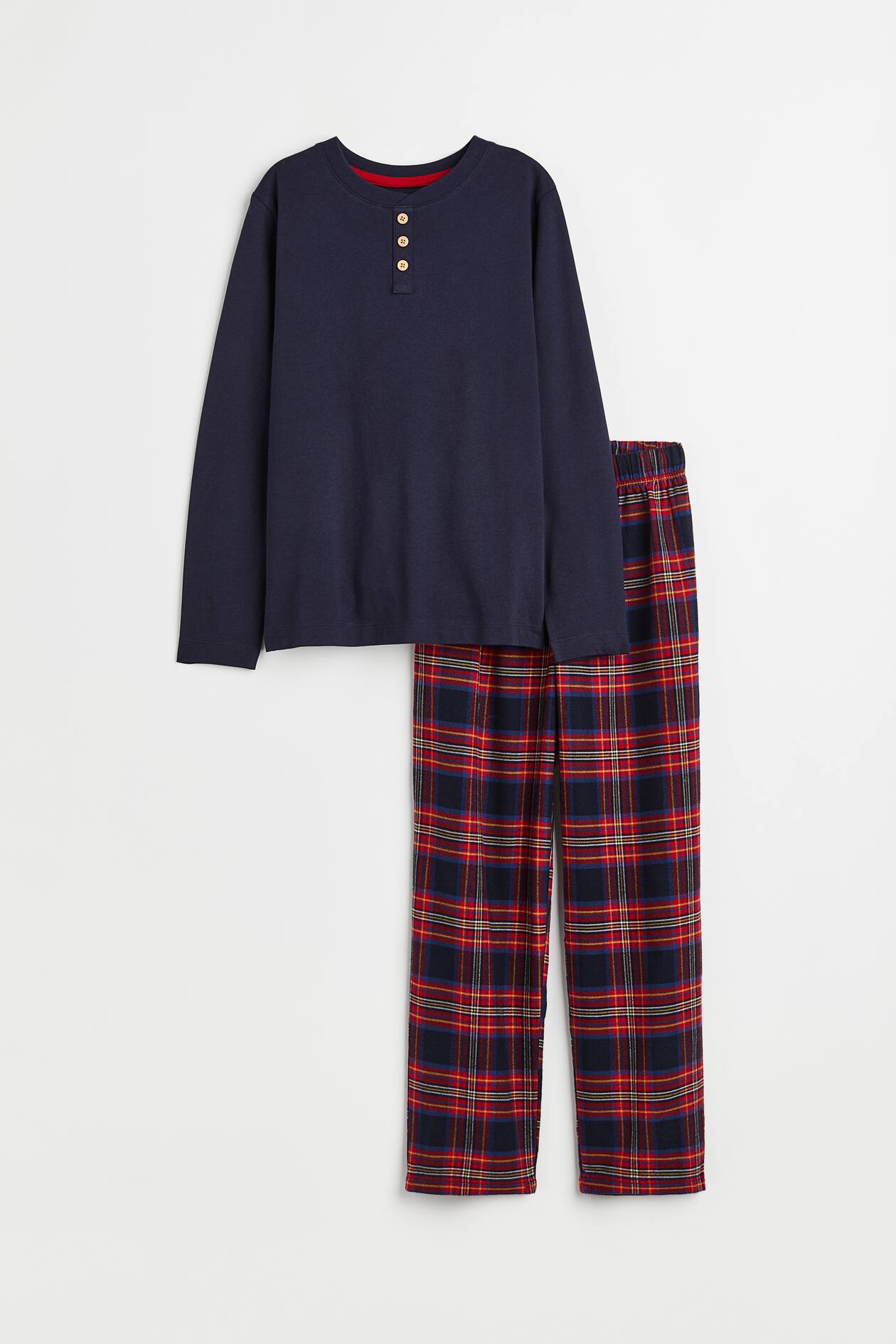 Perfekt für eine gute Nacht! Dieser kuschelige Schlafanzug für Jungen in blau-grün kariertem Design besteht aus weicher Baumwolle und sorgt für einen gemütlichen Schlaf. Das Set besteht aus einem langärmligen Oberteil mit praktischer Tasche und einer Hose mit elastischem Bund für optimalen Komfort. In verschiedenen Größen von 134-140 bis 170-176 erhältlich, wächst der Pyjama quasi mit. Ob als Geburtstagsgeschenk, zu Weihnachten oder einfach für den täglichen Gebrauch - dieser Schlafanzug ist immer die richtige Wahl. Die karierte Optik ist zeitlos schön und die Baumwolle angenehm auf der Haut. Dein Kind wird sich in diesem Pyjama rundum wohlfühlen und gut schlafen. Einfach anziehen, ins Bett kuscheln und träumen!