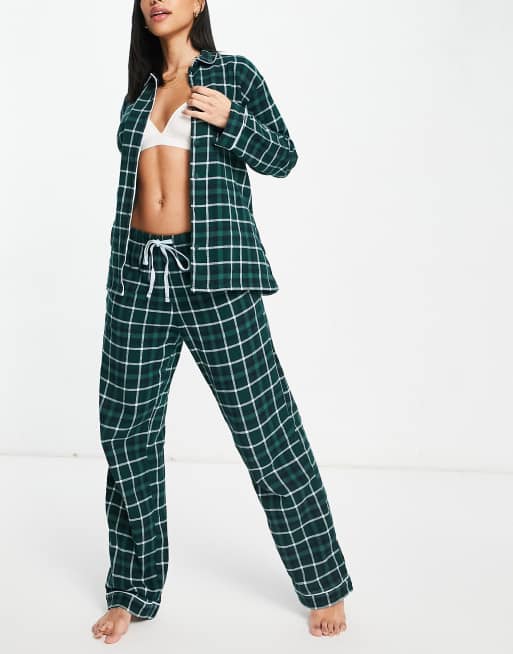 ThePyjamaFactory Jungen Schlafanzug Blau-Grün Kariert - Baumwolle Pyjama Set