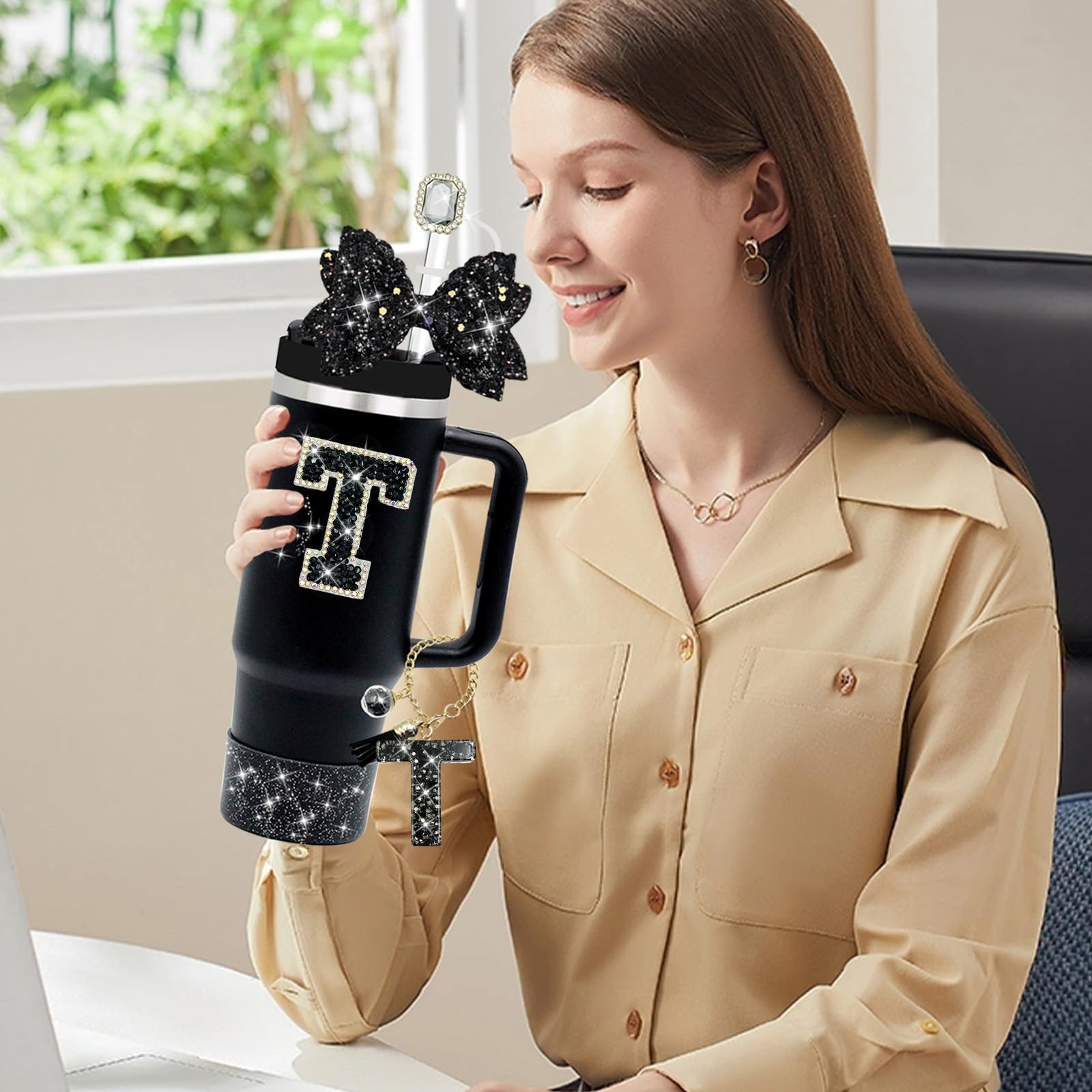 Mach deinen Stanley Cup zum absoluten Hingucker! Dieses 7-teilige Bling-Set verwandelt deinen 30oz oder 40oz Tumbler in ein personalisiertes Kunstwerk. Enthalten sind: Initial Handle Charm, Diamond Straw Stopper, funkelnder Straw Topper Cover, schützender Silikon Boot, Spill Proof Stopper und Initial Sticker. In strahlendem Silber gehalten, sorgt das Set für Aufmerksamkeit in der Schule, im Büro oder unterwegs. Der Rhinestone Diamond Straw Stopper hält deinen Strohhalm sauber, während der Silikon Boot deinen Becher vor Beschädigungen schützt. Einfach zu montieren und kompatibel mit Stanley Cups mit 10mm Durchmesser. Perfekt als Geschenk für Freunde, Familie oder dich selbst. Zeige deinen persönlichen Style und schütze gleichzeitig deinen wertvollen Becher. Mit diesem Set wird dein Stanley Cup zum unverwechselbaren Accessoire, das garantiert Komplimente erntet!
