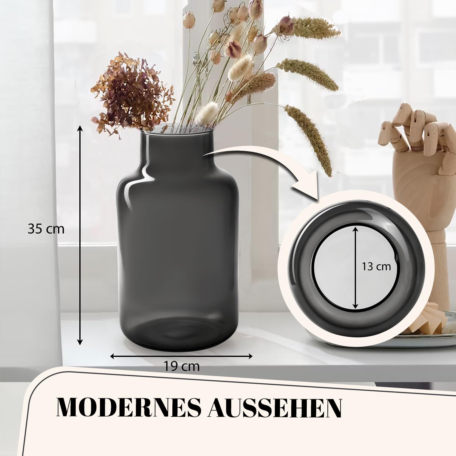 • Bloomique Magret Blumenvase - Rauchschwarz Glas 40cm Für Pampasgras & Blumen