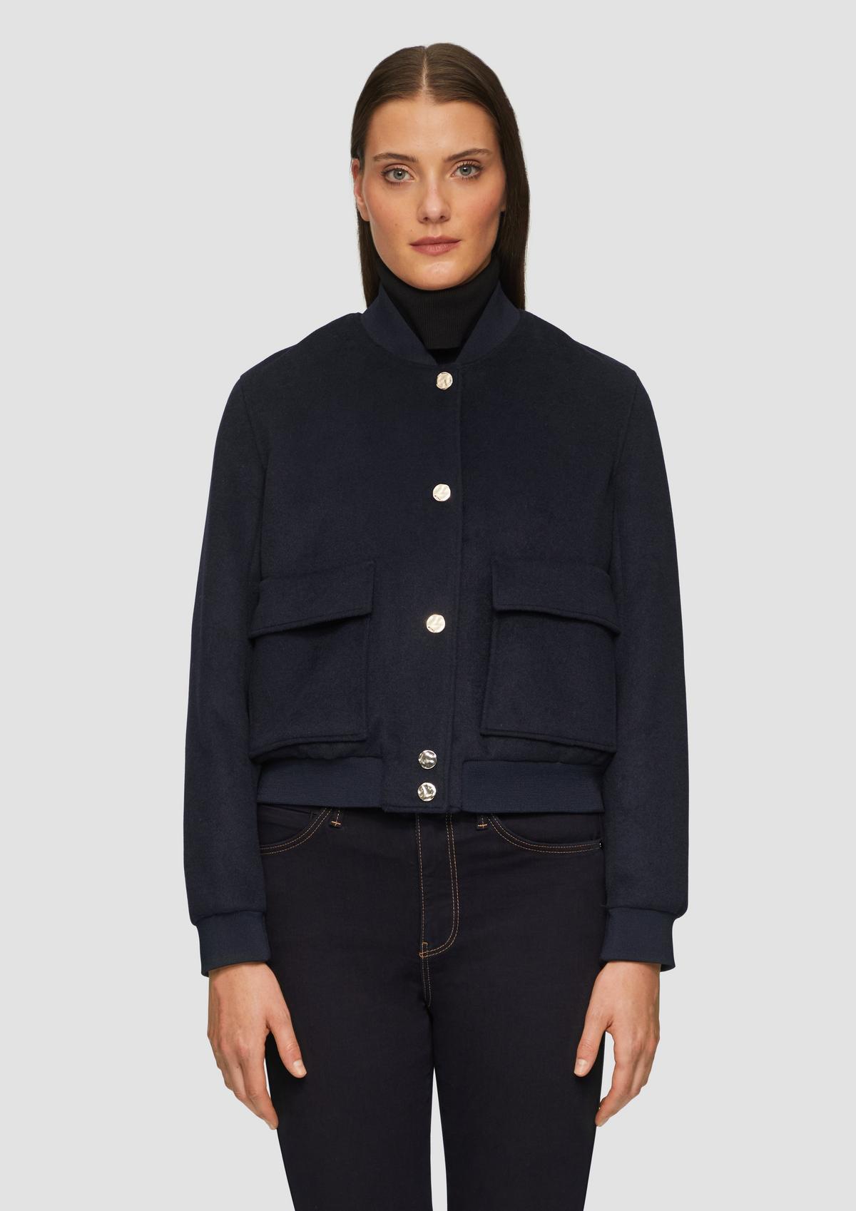 Total lässig und trotzdem stylisch - dieser s.Oliver Blouson für Damen ist perfekt für den Übergang! Aus nem gemütlichen Wollmix gefertigt, mit praktischem Stehkragen und langen Ärmeln. Die Druckknöpfe machen das An- und Ausziehen super easy, und die aufgesetzte Tasche gibt dem Ganzen noch nen coolen Look. Regular Fit heißt: sitzt genau richtig, nicht zu eng, nicht zu weit. Ob zum Shirt oder nem schicken Top - dieser Blouson passt einfach immer. Perfekt für den Alltag oder wenn's mal etwas schicker sein darf. Ein echter Allrounder, der in keinem Kleiderschrank fehlen sollte!