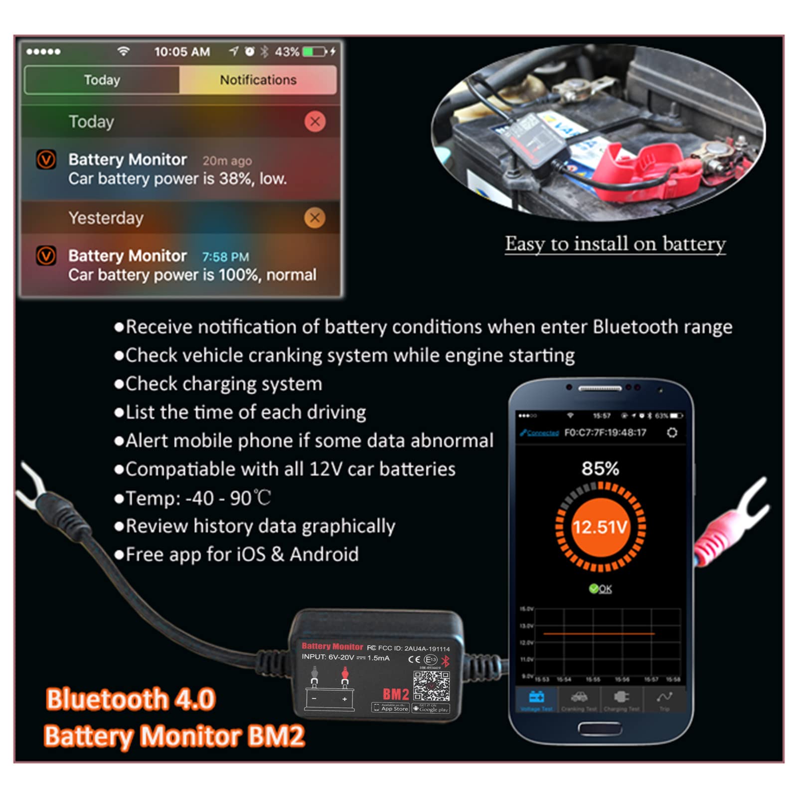 Hey, der Aboiled BM2 ist echt praktisch wenn du deine Autobatterie im Blick behalten willst! Der kleine Bluetooth 4.0 Monitor zeigt dir jederzeit den Zustand deiner 12V Batterie an - Spannung, Ladezustand und sogar Starttests macht er mit. Das coole Feature: Sobald du in Bluetooth-Reichweite deines Autos bist, kriegst du automatisch ne Benachrichtigung über den Batteriezustand. Musst nicht mal die App extra öffnen! Der BM2 speichert bis zu 35 Datenpunkte und warnt dich sofort wenn was nicht stimmt. Besonders praktisch ist der Ladestarttest - der checkt jedes Mal wenn du den Motor startest die Startspannung auf die Hundertstelsekunde genau. Die App zeigt dir alle historischen Daten als übersichtliche Grafik an. Schutz vor Kurzschluss und Verpolung ist natürlich auch dabei. Kompatibel mit allen 12V Autobatterien und funktioniert mit Android 4.3+ und iOS 7.1+. Einfach die BM2 App runterladen, scannen und loslegen - so behältst du deine Batterie immer im Griff!