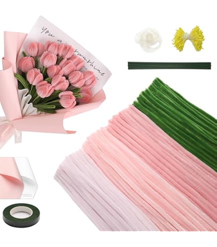 Wow, mit diesem 400-teiligen Pfeifenreiniger Blumen Set kannst du richtig kreativ werden! Das Set enthält alles, was du für wunderschöne Blumensträuße brauchst: 100 dunkelrosa, 100 hellrosa, 100 lila und 100 grüne Pfeifenreiniger plus 20 grüne Blumendrähte, Kreppband, Blütenstempel und sogar Geschenkpapier. Die Pfeifenreiniger sind aus elastischem Metalldraht mit weicher Faserschnur - super fluffig und in lebendigen Farben. Perfekt für DIY-Anfänger, denn du brauchst keine Vorkenntnisse. Bastle tolle Blumen für Muttertag, Geburtstage oder als Deko fürs Zuhause. Das macht nicht nur Spaß, sondern ist auch eine schöne Beschäftigung für die ganze Familie. Die Blumen verblühen nie und sind damit ein besonderes Geschenk von Herzen. Einfach loslegen und deiner Kreativität freien Lauf lassen!