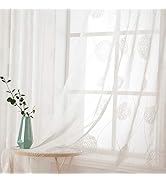 Funjxhey Vorhang Mit Blumen-Stickerei - Transparente Gardine 140x140cm Lila