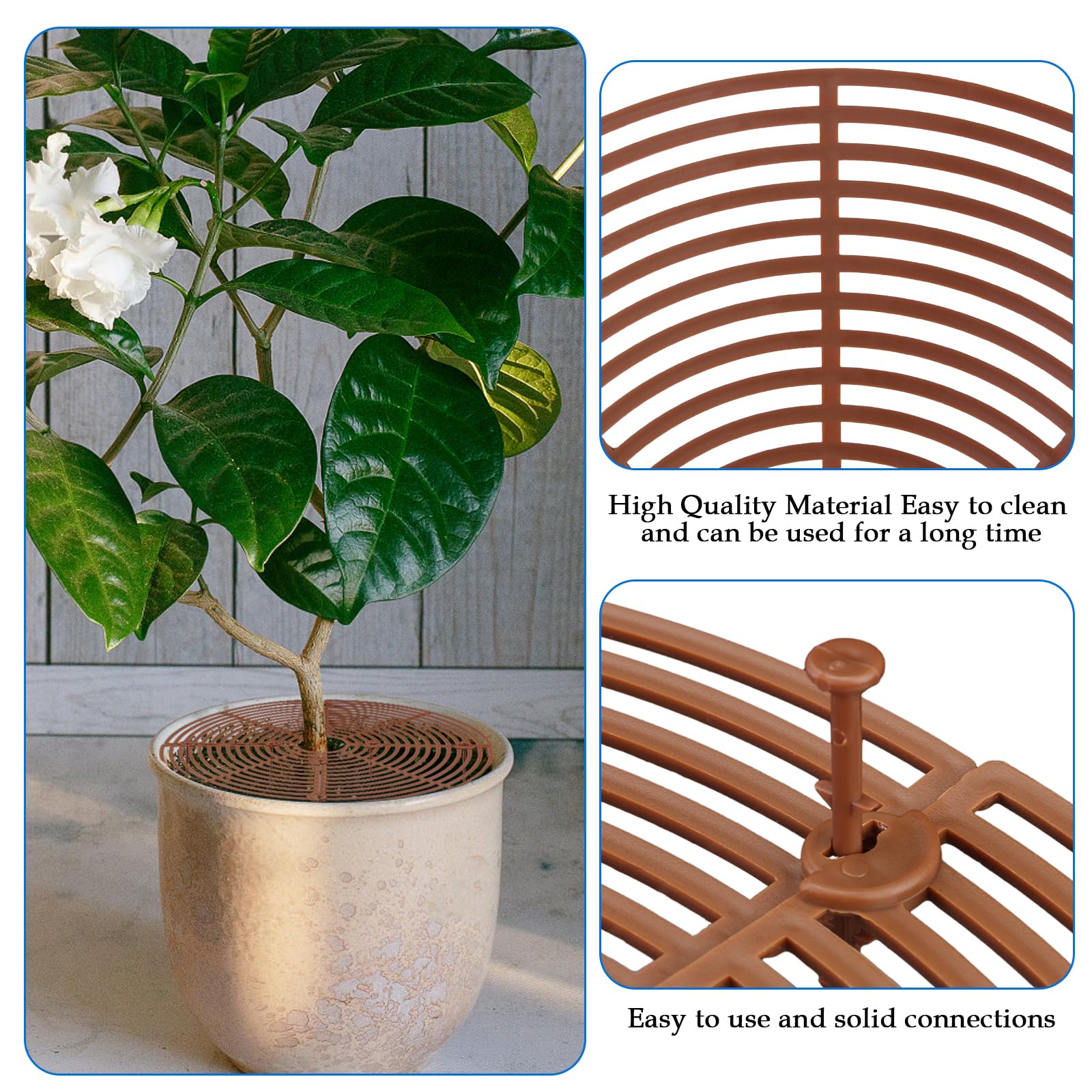 Schütze deine Pflanzen vor neugierigen Haustieren und Kindern! Dieses 4er-Set Schutzgitter für Blumentöpfe deckt die gesamte Erdoberfläche ab. Mit 30cm Durchmesser und schneidbar für individuelle Topfgrößen. Inklusive 8 Anti-Rutsch-Nägeln (10cm lang) für festen Halt. Das unauffällige Design stört nicht die Optik deiner Pflanzen. Einfach zuschneiden, auflegen und mit Nägeln fixieren - schon bleibt die Erde dort, wo sie hingehört. Perfekt für alle, die ihre Zimmerpflanzen vor grabenden Katzen und spielenden Kindern schützen wollen!