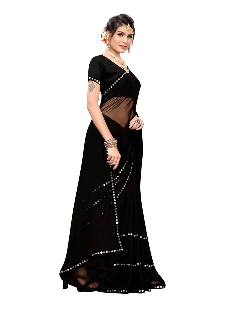 • BishtHub Damen Saree Mit Bluse - Baumwolle-Seide Kalamkari Print In Schwarz