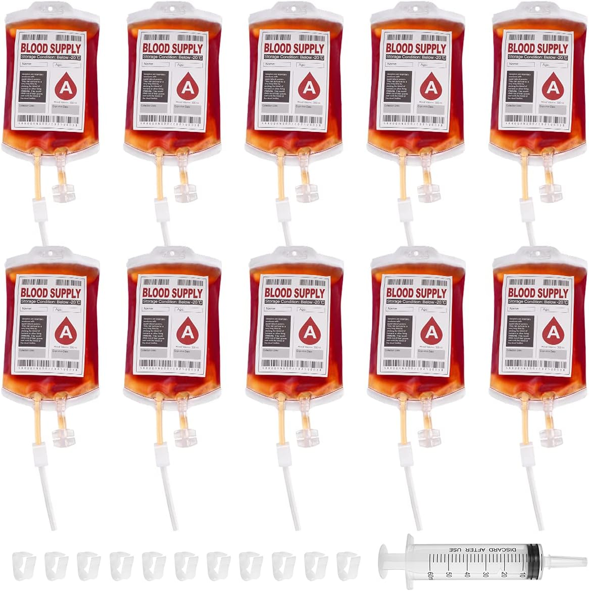 Boo! Mach deine Halloween-Party zum absoluten Gruselfest mit diesen blutigen Getränkebeuteln! \\n\\nDie sehen aus wie echte Blutkonserven - inklusive Infusionsschlauch und Spritze. Einfach mit Saft, Cocktails oder was auch immer füllen und die Gäste werden ausflippen! \\n\\nJeder Beutel hat 350ml Fassungsvermögen und ist aus lebensmittelechtem PVC. Also unbedenklich für Getränke. \\n\\nMit Clip-Verschluss, damit nichts ausläuft - selbst wenn's wild wird. \\n\\nIm Set enthalten: \\n- 10x Blutbeutel \\n- 10x Blutgruppen-Aufkleber \\n- 10x Clips \\n- 1x Spritze \\n- 1x Infusionsschlauch \\n\\nPerfekt für: Halloween, Cosplay, Vampir-Partys, oder als Scherz für Medizinstudenten. \\n\\nTipp: Vor dem ersten Gebrauch kurz lüften lassen, dann riecht's wie neu!