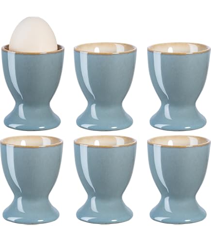Frühstücks-Fans aufgepasst! Dieses Bluweet Eierbecher Set macht jedes Frühstück zu einem besonderen Erlebnis. 6 wunderschöne Eierbecher aus hochwertiger Keramik in Grau, dazu passende Löffel - alles dabei! Perfekt für weich oder hart gekochte Eier, die ergonomische Form hält alles sicher an Ort und Stelle. Handbemalt und mit Email-Technologie veredelt, sind sie nicht nur mikrowellenfest, sondern auch spülmaschinengeeignet. Der breite, stabile Boden sorgt dafür, dass nichts wackelt. Und das Beste: Die nachhaltige Produktion schont die Umwelt. Sieht nicht nur auf dem Frühstückstisch super aus, sondern kann auch als Dessert- oder Obstschale verwendet werden. Ein richtig schönes Geschenk für alle Eier-Liebhaber - ob zu Ostern, Weihnachten oder einfach so. Mit diesem Set bringst du Stil und Eleganz auf deinen Tisch. Einfach klasse verarbeitet und fühlt sich hochwertig an!