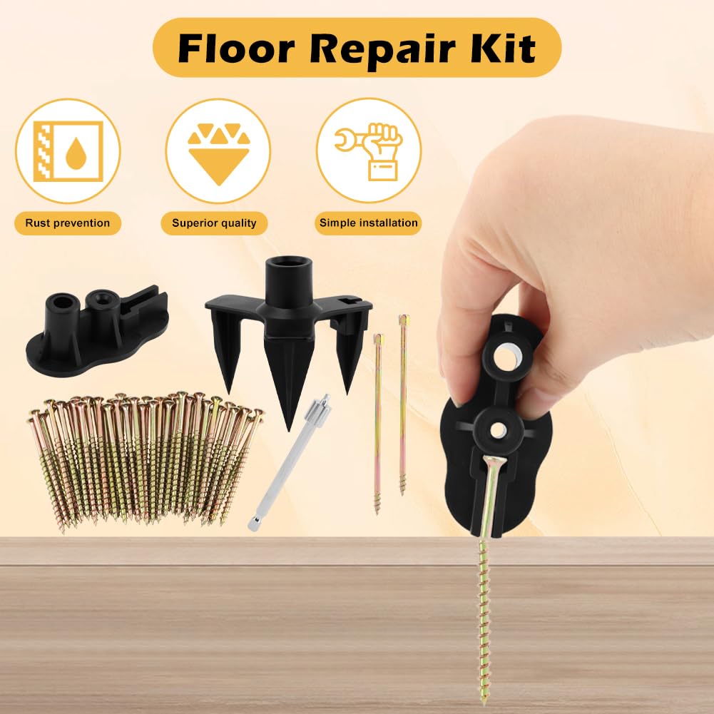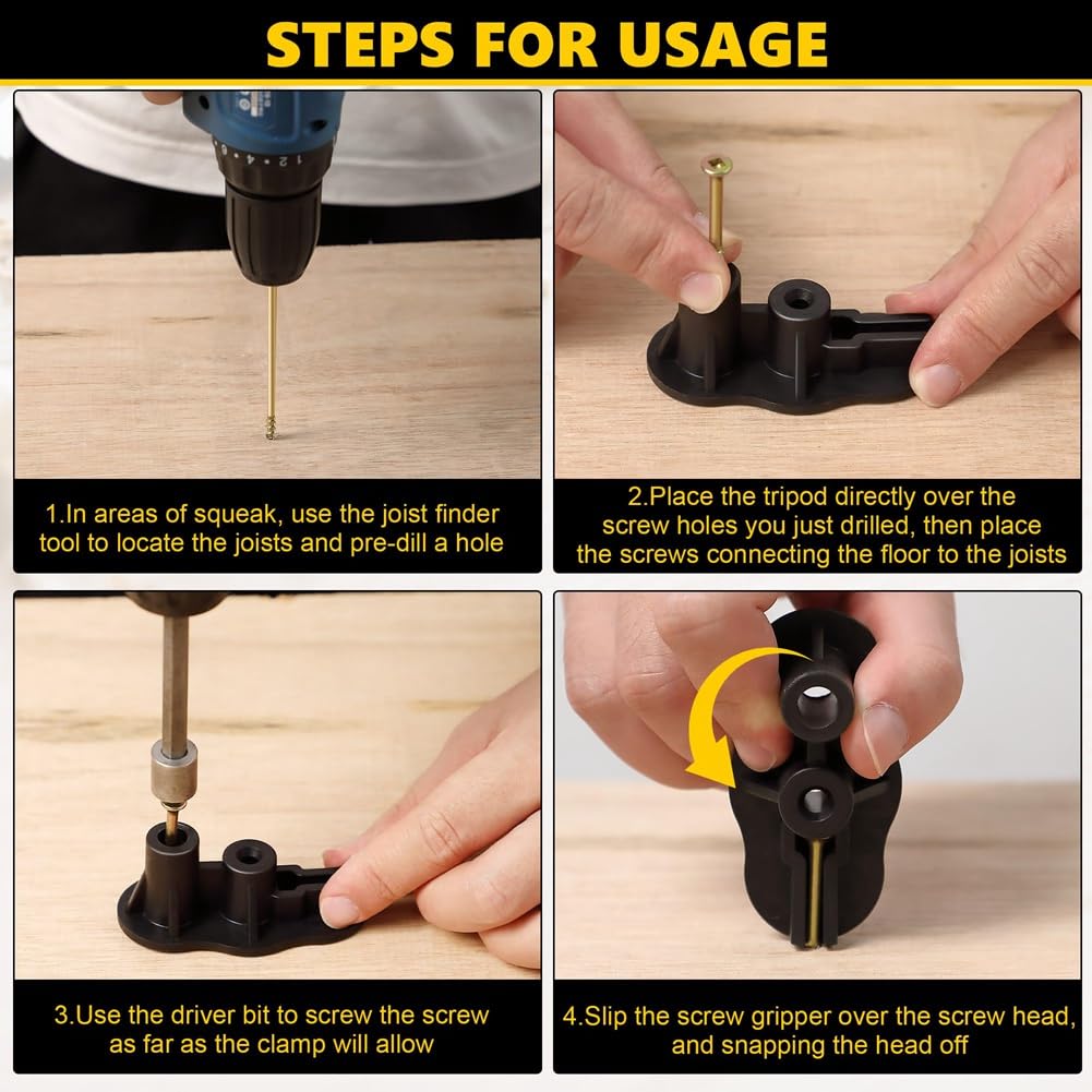 Nervige Quietschgeräusche aus dem Boden? Dieses Reparaturset macht Schluss damit! Enthalten sind 5 praktische Werkzeuge und 50 Spezialschrauben um quietschende Holzböden, Teppiche, Vinyl- oder Linoleumböden zu reparieren. Einfach anzuwenden - keine professionelle Hilfe nötig! Die Schrauben aus hochwertigem Stahl sorgen für eine dauerhafte, stabile Lösung. Endlich wieder Ruhe in den eigenen vier Wänden!